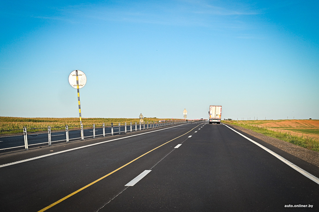 — Что еще сразу бросается в глаза — разделительное ограждение. Ведь на всей протяженности M1 есть широкая разделительная полоса — все белорусы к этому привыкли. А тут полосы нет: тросовое ограждение установлено на асфальте разделительной зоны. Хорошо еще, что она здесь довольно широкая, потому что, к примеру, в России пространства между направлениями еще меньше. Едешь и невольно напрягаешься: скорость на трассе высокая, а встречные машины пролетают как-то непривычно близко, — говорит ведущий рубрики.