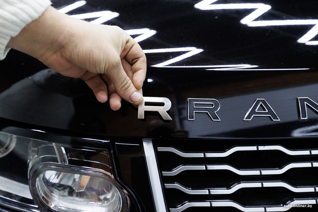 В процессе оклейки от владельца Range Rover поступило еще несколько просьб: заменить буквы логотипа на капоте (с хромированных на темные), а также установить новую решетку радиатора.