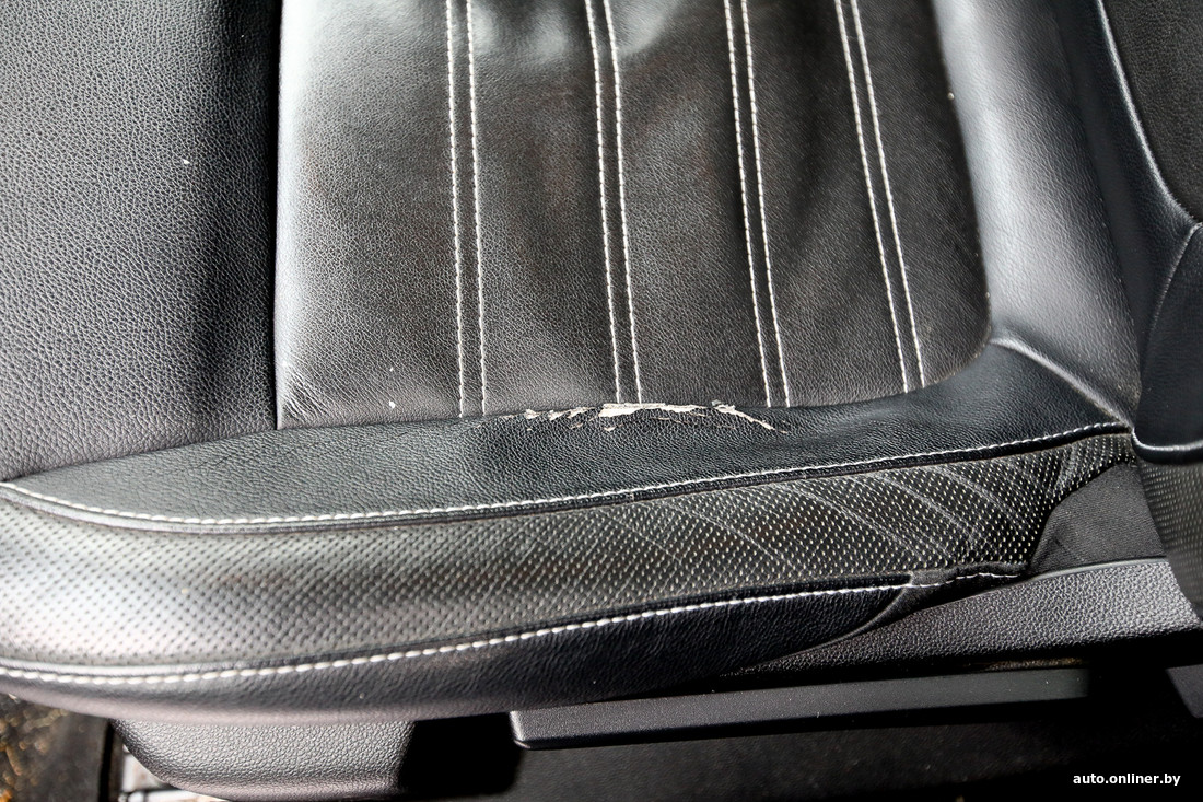 И почему в такой красивой машине такие неудобные сиденья? У маркетологов эта обивка называется экокожей, у нормальных людей — дерматином: летом потеешь, зимой холодно. Плюс подушка короткая. И на водительском кресле эта обивка уже потрескалась…