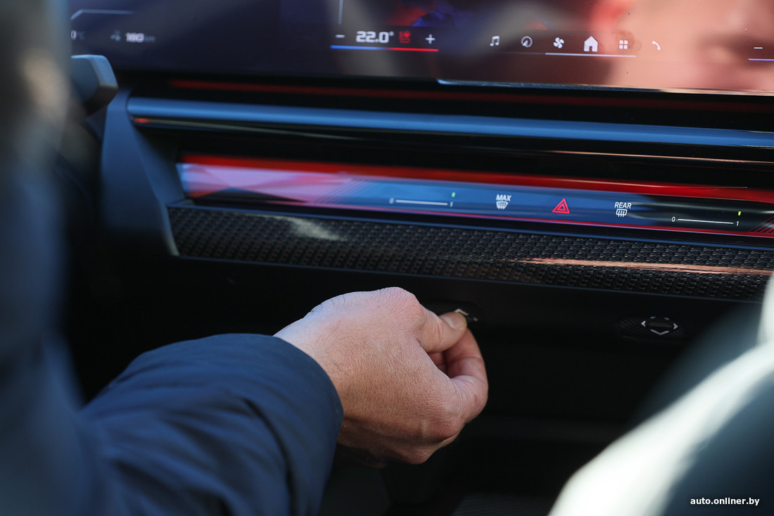 — Ну что ж, свежо, приятно. С панелью я уже знаком, у iX это видели. Но тут есть новые штуки. Что грустно — убрали чисто «бээмвэшные» кнопочки: 1, 2, 3, 4... Это была такая фирменная «плюшка», какой в свое время были «глазки». Да, привыкнем, но жалко. Селектор мне очень нравится. Я знаю, что многие категорически против, но это круто все равно. А вот блок управления стеклами заметно удешевили — все это видят, все это уже обсудили. Я понимаю — современные тенденции. Но в такой машине это как-то не смотрится. Я буду жестко критиковать и BMW, и все современное машиностроение за повальное удешевление. Да, от этого никуда не деться, но это грустно, — дает первую оценку новый водитель.