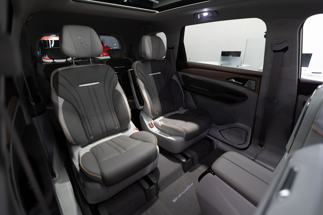 Второй ряд получил капитанские сиденья с электрорегулировкой и столиками. Кресло водителя также оснастили функциями памяти и массажа. Подогрев и вентиляция доступны для первых двух рядов сидений. Центральный дисплей состоит из двух экранов общей диагональю 20,5 дюйма.