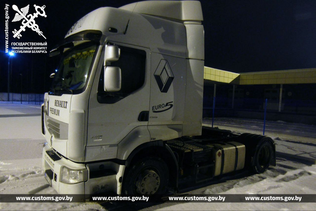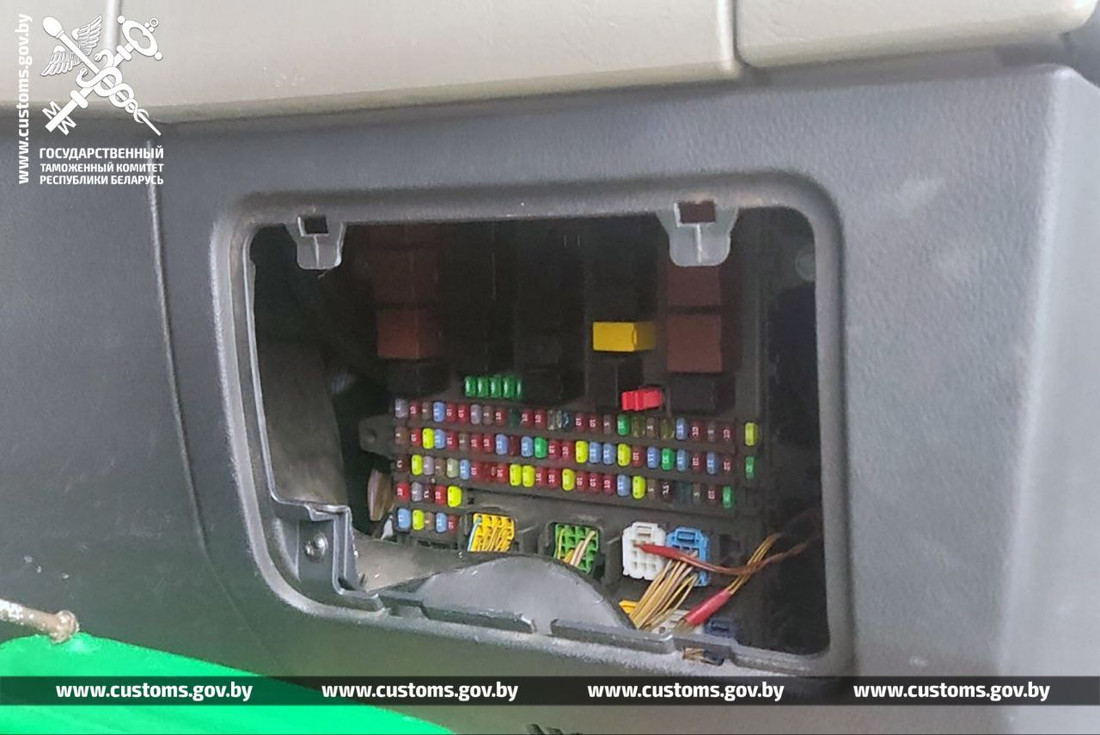 Гродненские таможенники во время досмотра грузовика марки Renault заметили нечто странное. Оказалось, что в передней панели кабины есть тайник.