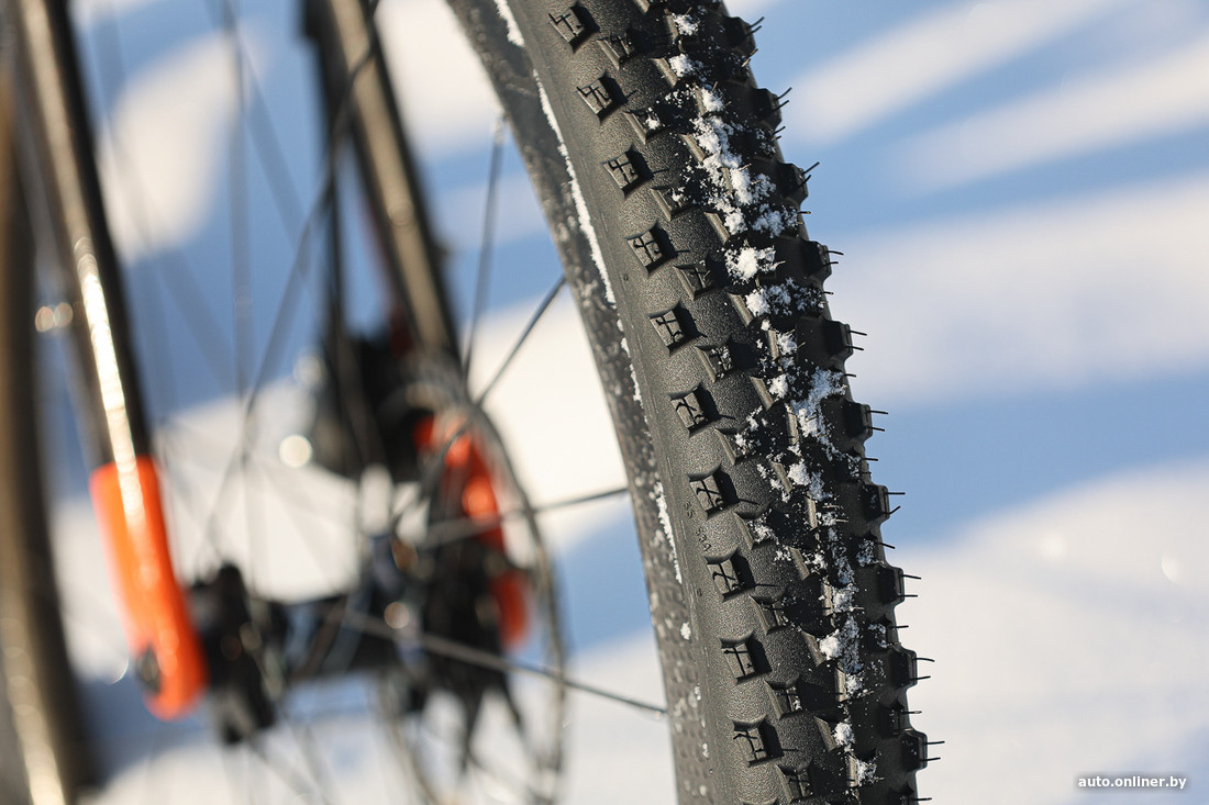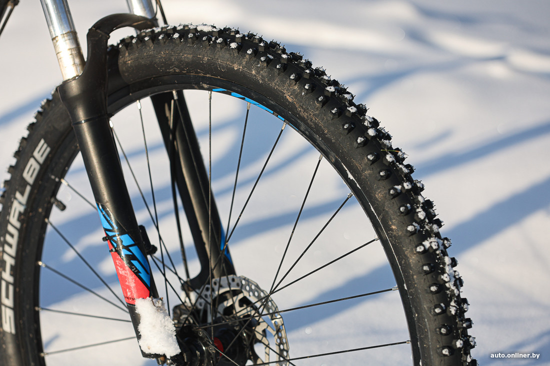 Третий вариант, если разобраться, самый простой — поменять резину на базовом велосипеде (если позволяет рама). Шипованную покрышку можно найти на все ходовые размеры обода, включая 26, 27,5, 28 и 29 дюймов. Конечно, в последние пару лет сделать это стало сложнее, но уж если задумали кататься зимой, то наверняка готовы к трудностям, правда?