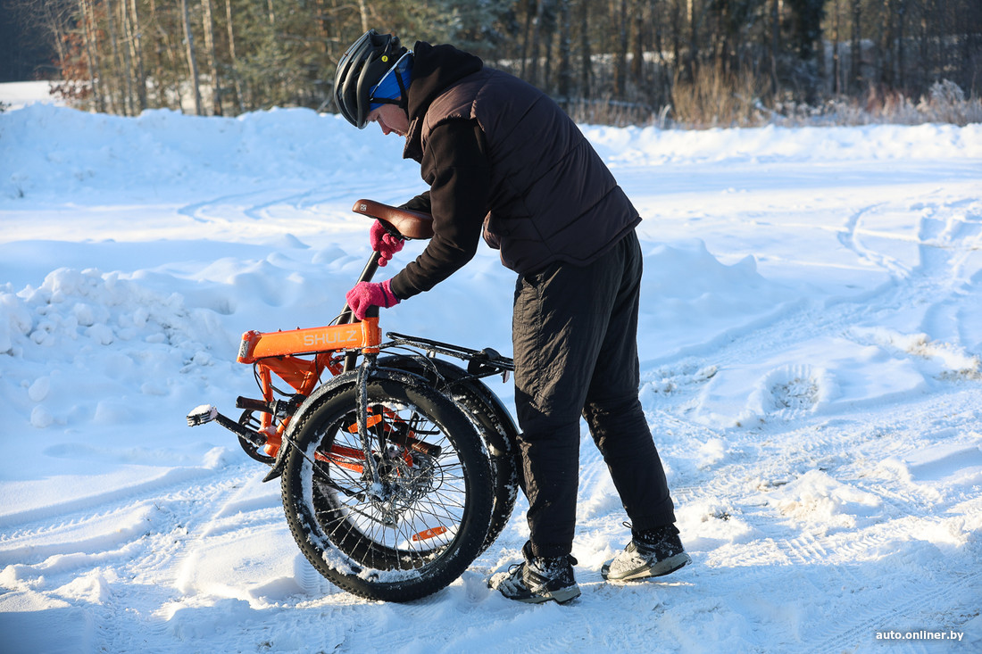Зимой хочется фэтбайк, но в течение остальных девяти месяцев не вполне понятно, что с ним делать и где его хранить. Поэтому мы искали компромисс и нашли Shulz Easy Fat — складной велосипед на покрышках диаметром 3 дюйма (7,6 см), полуфэт, который в сложенном состоянии помещается в багажник автомобиля, а это вполне себе заметный плюс. К примеру, как транспортировать полноразмерный байк в машине даже с велобагажником на крыше, решительно не понятно, а тут — никаких проблем.