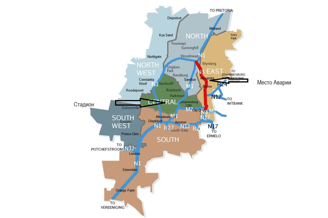 В тот день на самом большом стадионе Африки «Соккер Сити» проходил товарищеский матч между сборными ЮАР и Бразилии. Шоссе №3 входит в систему объездных дорог Йоханнесбурга и ведет из Мальборо как раз в сторону стадиона. С большой уверенностью можно предположить, что футболист направлялся именно туда.