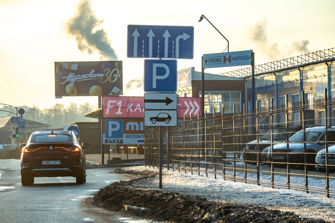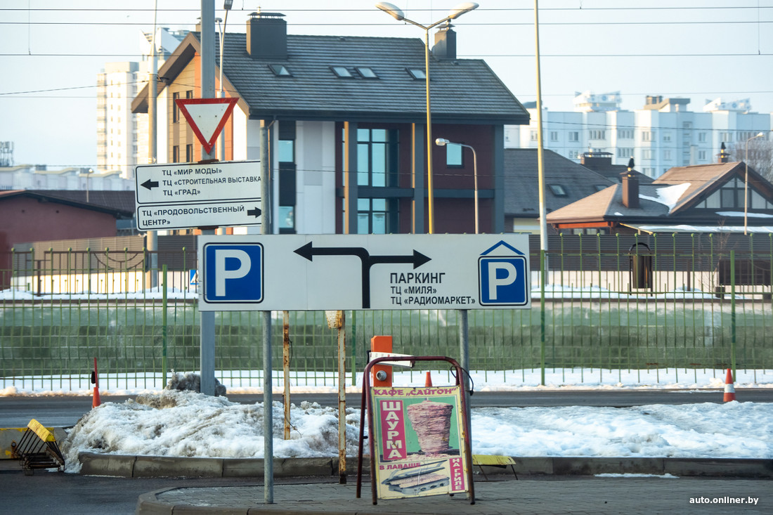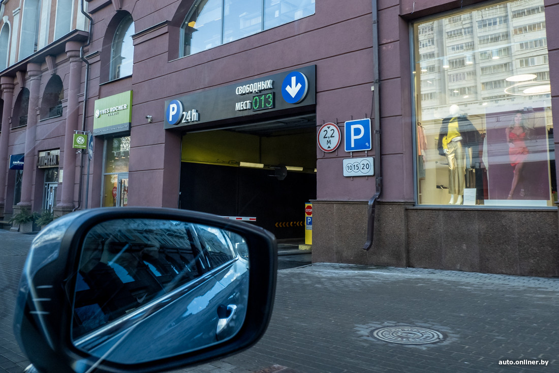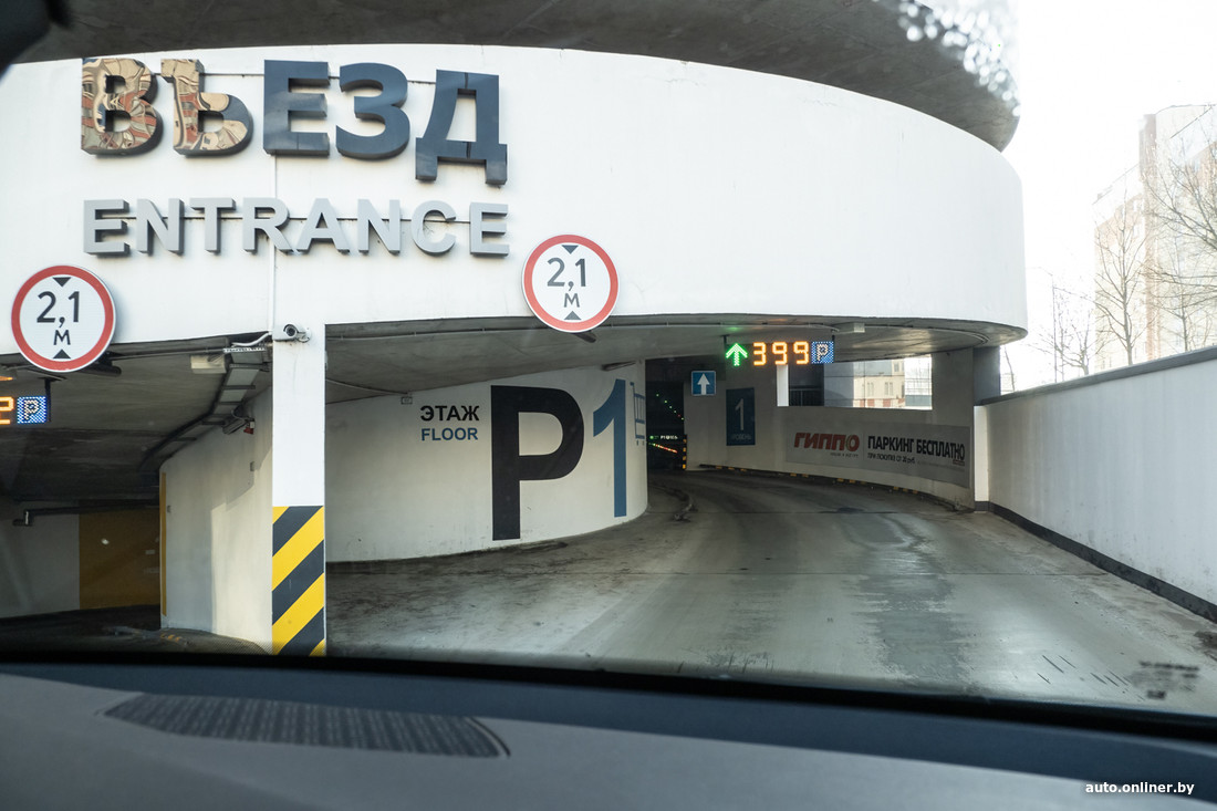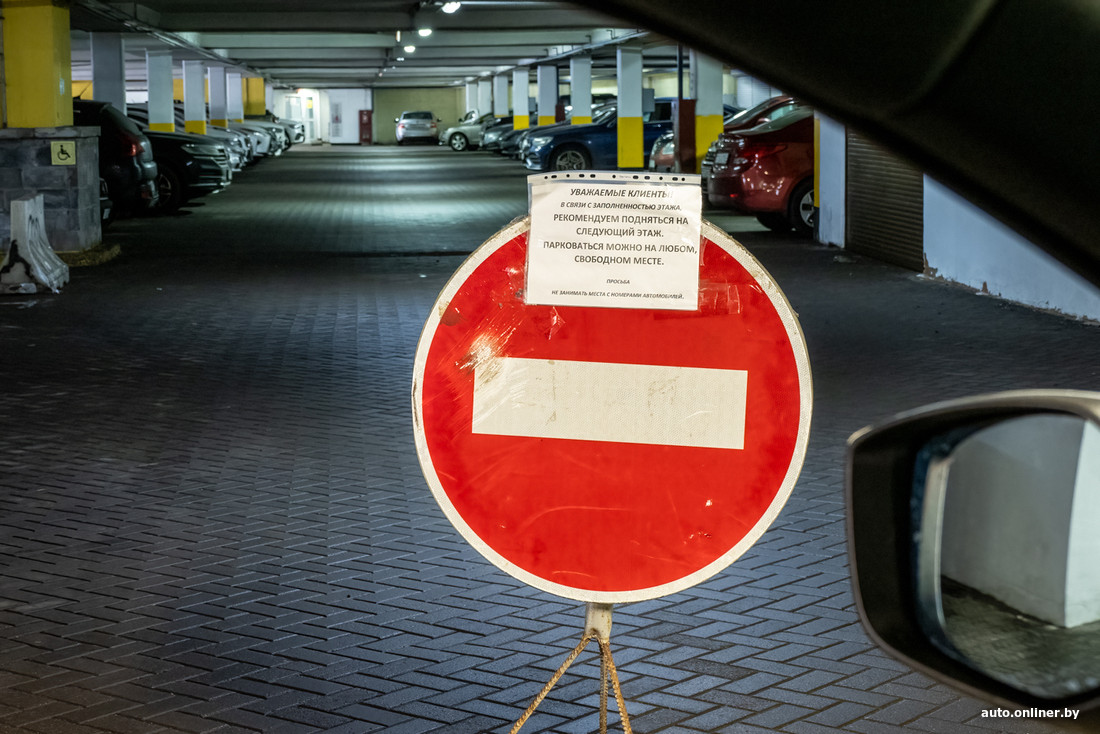 — Этот паркинг я хорошо знаю, — говорит ведущий рубрики, подъезжая к ТЦ «Замок». — Так же, впрочем, как и многие минчане. И поэтому на первом этаже мы даже не будем заниматься поисками места. Оно здесь есть, и не одно, но вообще здесь всегда полно машин. Мне проще заехать повыше и спокойно стать там, где свободнее.