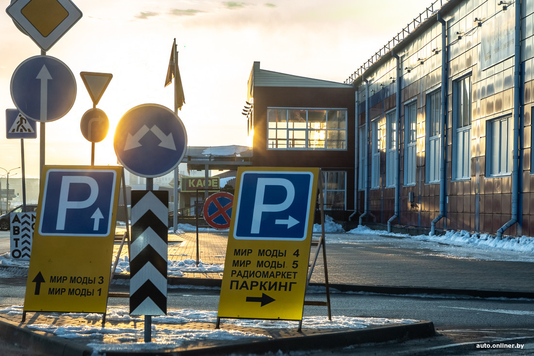Еще одна многоуровневая стоянка есть на улице Тимирязева — в ТД «Радиомаркет». Найти ее несложно, въезд виден с дороги — главное, вовремя занять крайний правый ряд. А потом знаки немного путают — можно свернуть не туда. В таком случае придется заходить на второй круг.