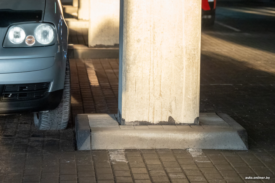 — Они съедают полезное пространство, мешают водителям. Он боится задеть эту «пятку» и паркуется далеко от нее, чем мешает тому, кто будет парковаться рядом. Я знаю случай, когда именно здесь, на этом паркинге, женщина заезжала на парковочное место, ей не понравилось, как все вышло, она хотела перепарковаться и в итоге напоролась на этот выступ. Для чего он вообще нужен? Чтобы не задевали столбы? Есть специальные резиновые накладки на них, они, по крайней мере, не занимают столько места, — ворчит преподаватель.