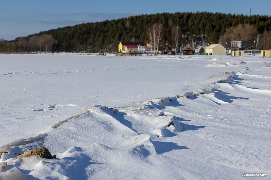 На центральном пляже красиво: ледяная волна отделила берег от озера и застыла до оттепели. Ожидающие сезона лодки напрашиваются стать фотозоной для красивых снимков.