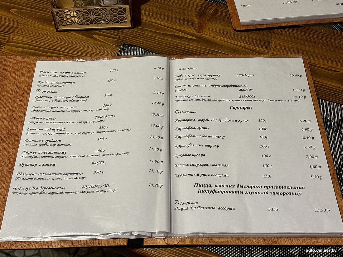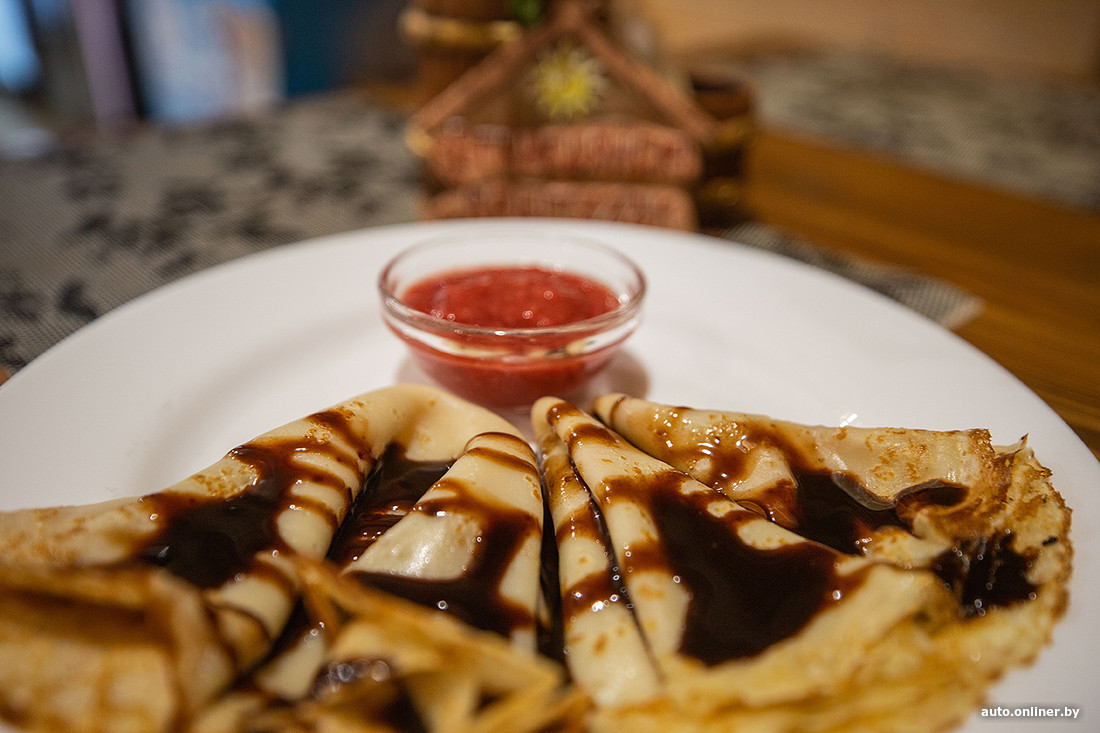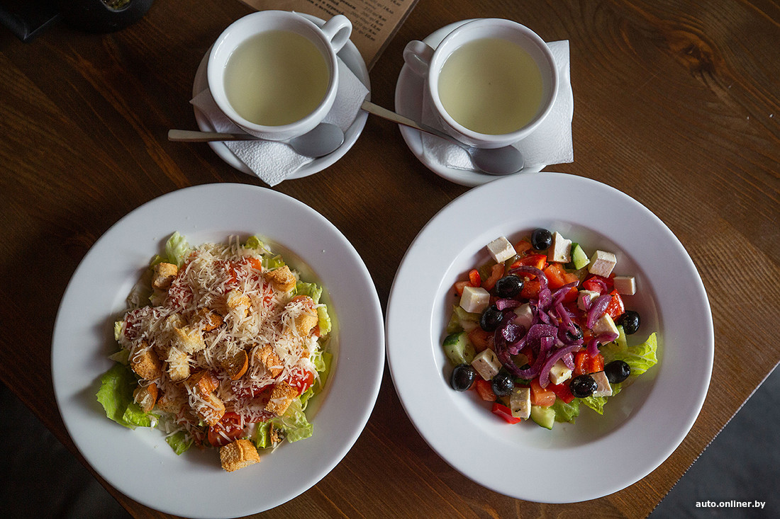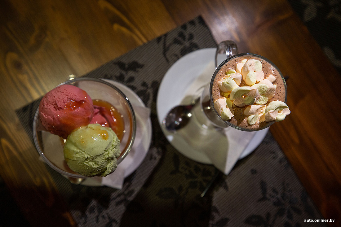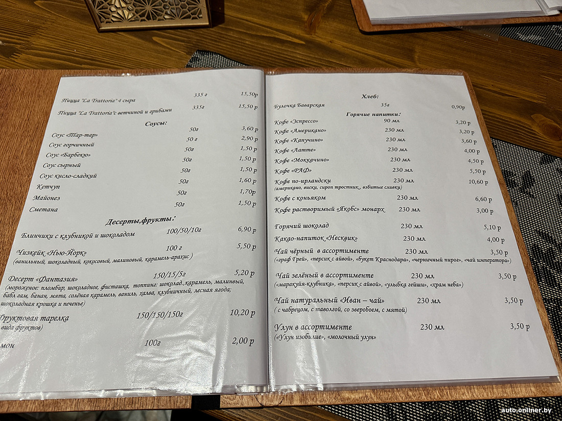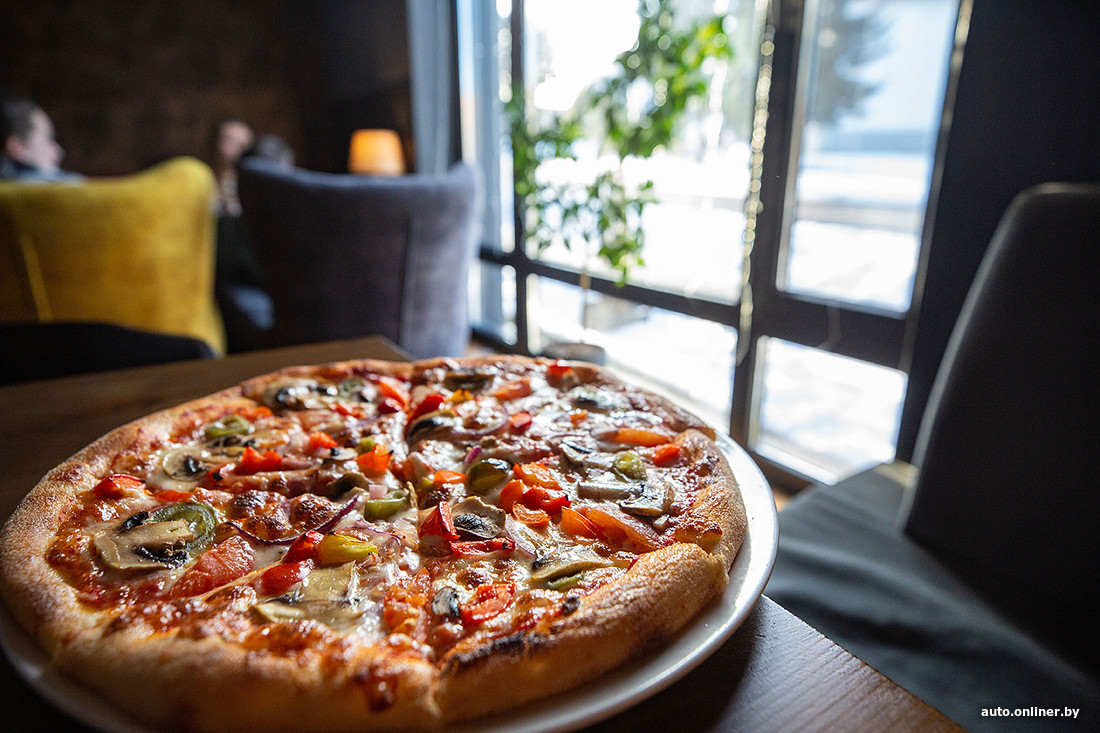 Напротив поздний обед делит семья с детьми, за соседним столиком, видимо, фрилансер с ноутбуком и кофе. В меню пиццы, бургеры, шаурма, блины, пасты. Делать акцент на чем-то одном владельцы не захотели, желая, вероятно, захватить максимально широкую публику. Цены — ну, почти минские.