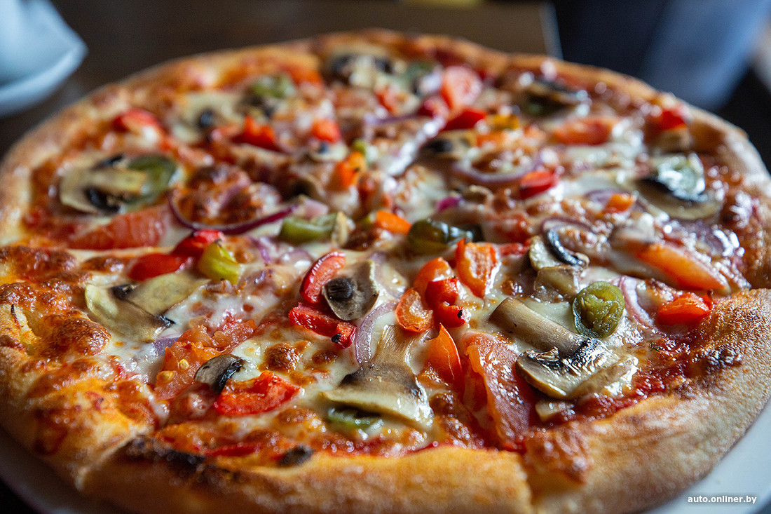 Официант оказался приветлив и без негатива воспринял нашу просьбу слегка изменить рецептуру мексиканской пиццы. Она, кстати, оказалась вкусной: много начинки и сыра, толстое тесто. Порции салатов большие, только в «Цезарь» зачем-то добавили копченую рыбу. Может, из того самого ларька рядом с «Виталичем»?