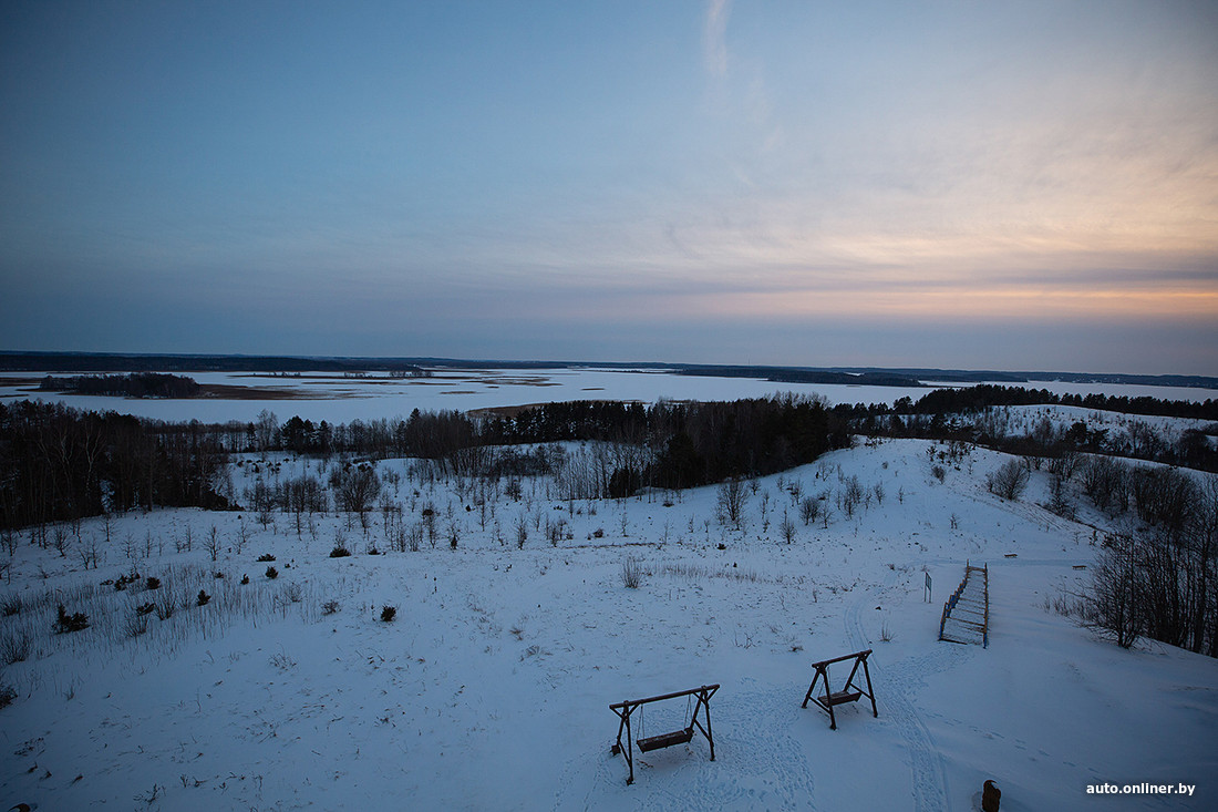 В нашем путеводителе по Браславу из гарантированных развлечений — рыбалка и лыжи с квадроциклами, которые можно взять напрокат на базе отдыха. И, конечно, релаксация от созерцания природы. Поэтому продолжим любоваться пейзажами. Обязательный пункт в путешествии по Браславщине — гора Маяк за городом. Ее высота относительно близлежащих озер — 44,7 метра.