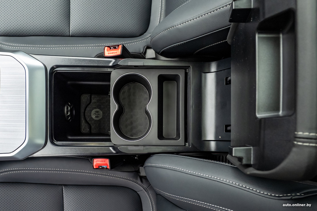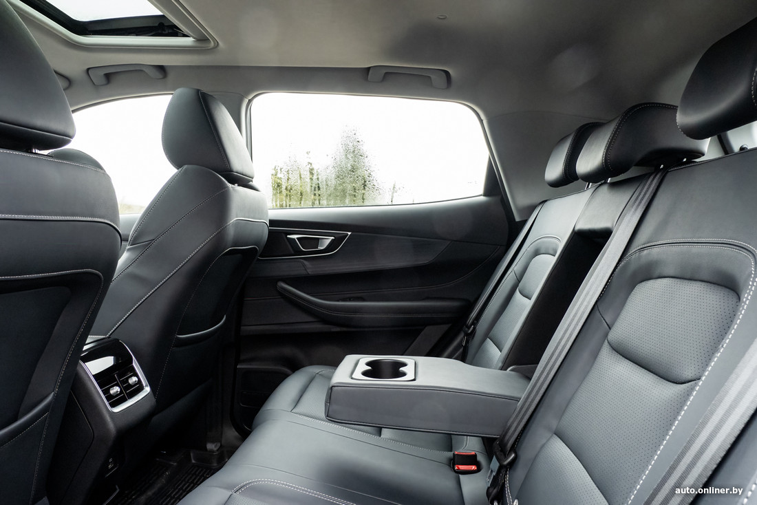 Будь это горячий пирог или пицца, мы бы включили подогрев задних сидений на максимум, но в данном случае это не имеет смысла. Не пригодились и подстаканники в подлокотнике, и USB-розетка для задних пассажиров, однако хорошо, что все это есть. И вообще, на втором ряду будет просторно не только большому торту, но и средней комплекции человеку, даже двум. Третий, пожалуй, будет лишним, даже несмотря на практически отсутствующий трансмиссионный тоннель. Все же салон Tiggo 4 нельзя назвать особо широким.