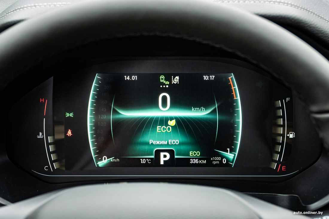 Выбираю ездовой режим Eco, чтобы двигатель как можно мягче отзывался на нажатие газа, а вариатор выбирал «передачу» повыше. Это работает! Chery готов мягко брать старт и наращивать скорость плавно, без подергиваний при переключениях коробки (если так вообще можно сказать про вариатор с девятью фиксированными передаточными числами).