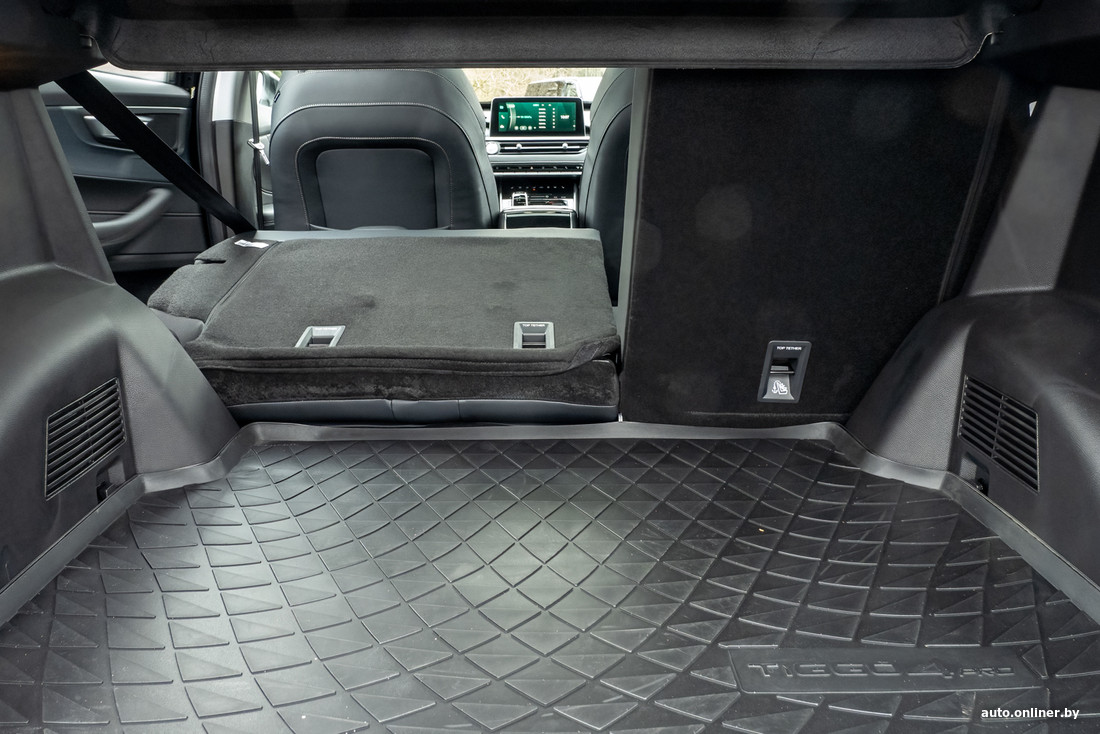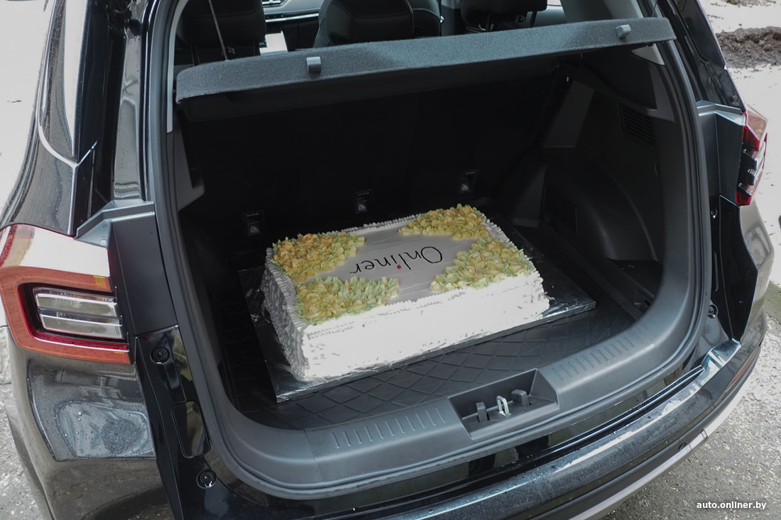 Нежно вынесли, аккуратно разместили в багажнике. Нет, это не обман зрения. Торт, конечно, большой, но он занимает практически всю площадь пола: в поперечном измерении осталось буквально по 5—7 см в каждую из сторон, в продольном — 20 см с одной стороны и максимум 10 с другой. Нет, Tiggo 4 Pro явно не для сладкоежек.