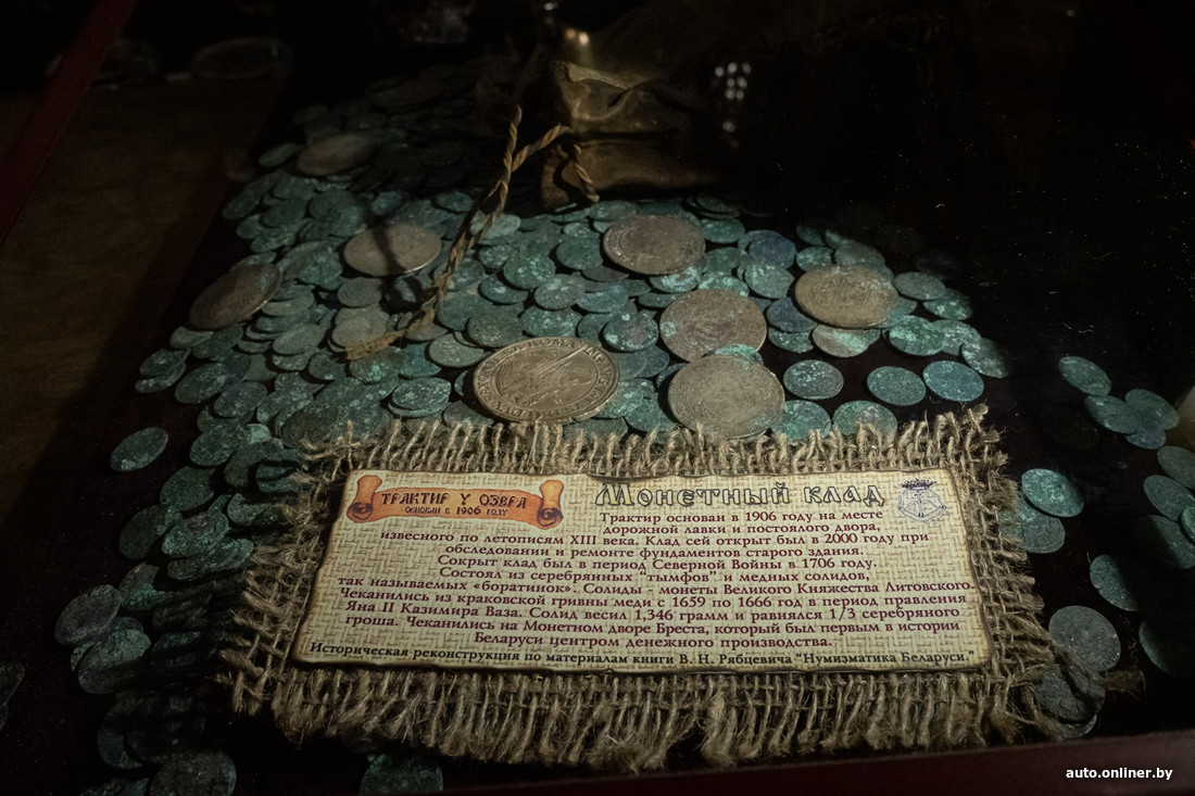 Брест — чудесный город, в котором, без сомнения, можно провести не один день и ни на минуту не заскучать. Но пора бы и перекусить после долгого пути. Хороших вариантов немало, стоит как-нибудь устроить полноценный гастротур по Бресту. Пока же заехали по рекомендациям в трактир «У озера» в городском парке. В принципе, название говорит само за себя: вот озеро, возле озера трактир. Находится он здесь уже довольно давно, причем, если разобраться, кормили путников именно в этом месте вообще с незапамятных времен: тут был постоялый двор. А в 2000 году здесь даже нашли настоящий клад: в фундаменте строения обнаружился схрон с древними монетами времен аж ВКЛ. Теперь монеты — можно ли поверить, что те самые? — хранятся в организованной у барной стойки экспозиции.