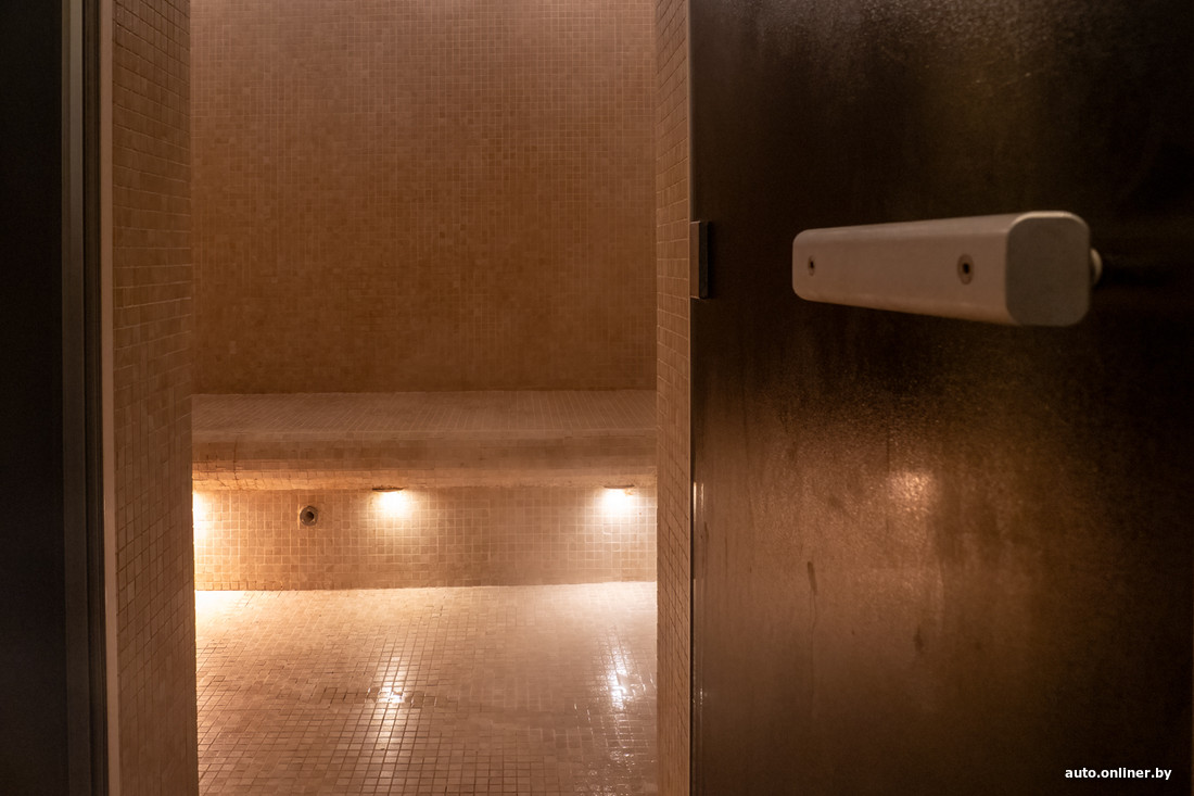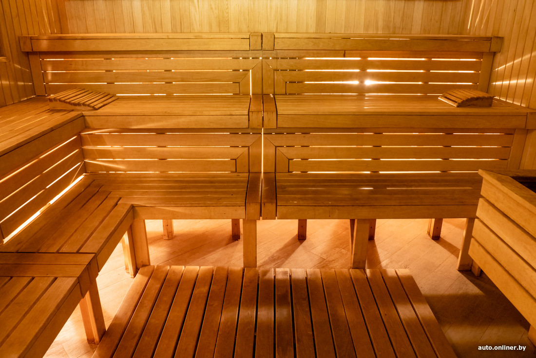 Есть баня: мы не пробовали, но выглядит интересно. Парные — хамам и русская, бассейн с подсветкой, комната отдыха, на террасе пуфы, набитые сеном: усесться перед распахнутыми ставнями и дышать сосновым воздухом.