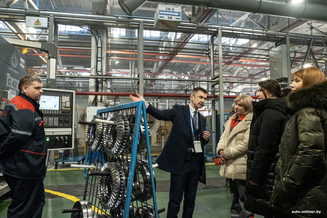 — Просьба детали и стружку не трогать, «сувениры» с собой не брать! — предупреждает сопровождающий. Но это уже механический цех №5, где происходит обработка деталей — валов и шестерней для трансмиссии. Здесь уже не так нарядно, как в цехе сборки, пахнет смазывающе-охлаждающей жидкостью для металлорежущих станков — в общем, ближе к производственной прозе. Тут уже выточить деталь на станке с программным управлением не дадут, зато посмотреть на это можно.