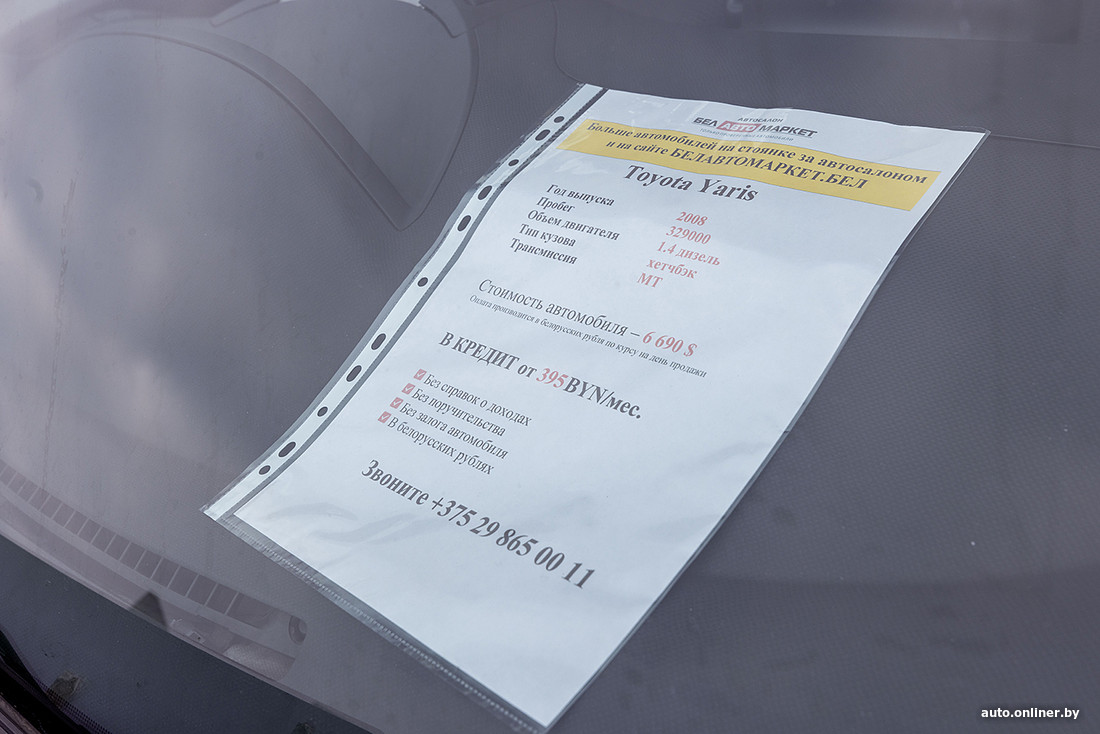 Что насчет популярных у белорусов моделей? Lada Largus 2013 г. в. с 1,6-литровым двигателем продают за $7790 в эквиваленте. Toyota Yaris 2008 г. в. с 1,4-литровым дизельным мотором — за $6690.