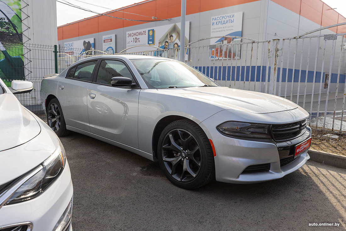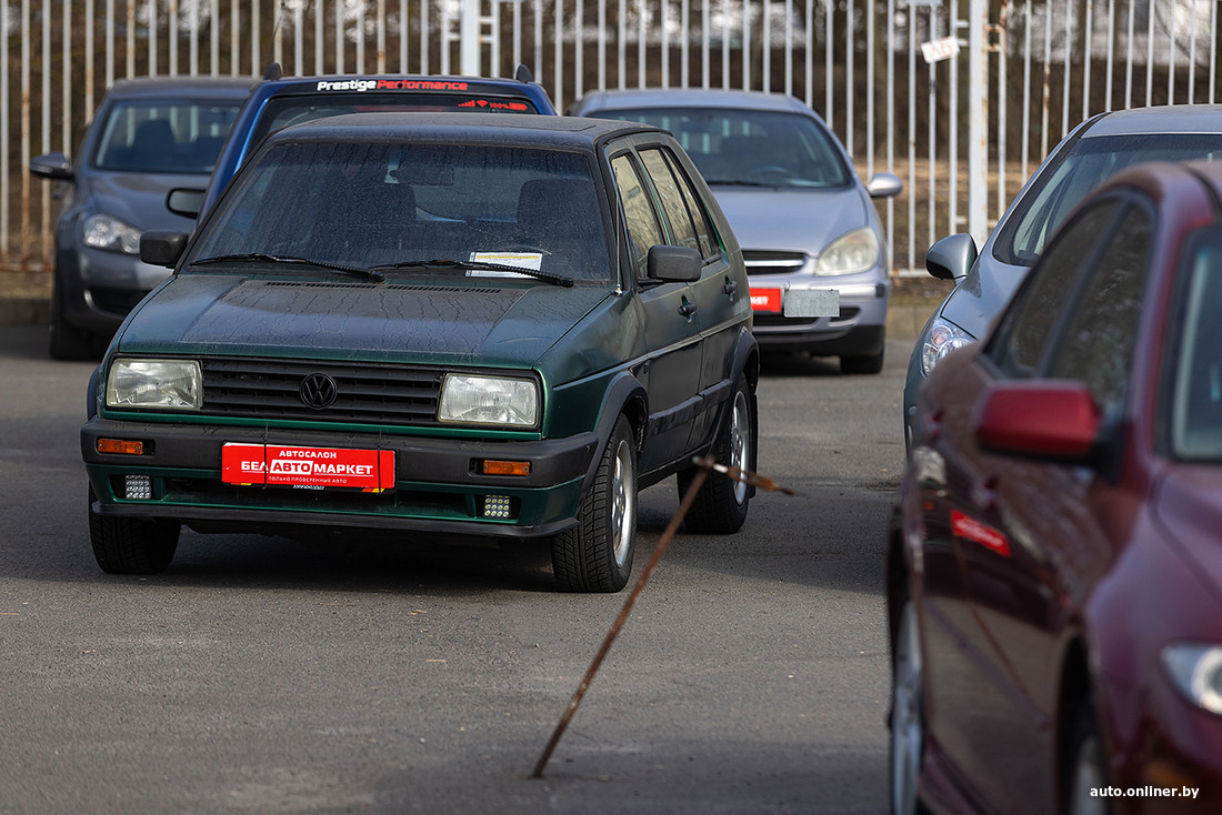 Площадка в Гомеле (еще есть в Бобруйске и Мозыре, всего 300 автомобилей) поделена на две стоянки. И там, и там — полная «солянка»: машины от $1000 и до $50 000 по курсу. Старенький Golf (1990 г. в.) за $2190 делит площадку с 4-летним Dodge Charger почти за $29 000. А вон на сплошных «восьмерках» подъехал еще и Challenger — он, видимо, на дистанционной продаже.