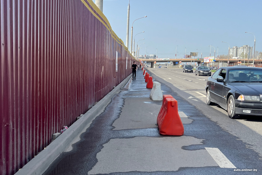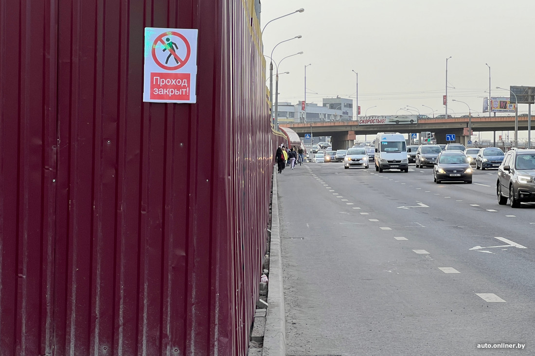 — Все это случилось еще на прошлой неделе: прямо при мне забор вдруг стали переставлять поближе к дороге. Причем ни знаков, ни нормального ограждения не сделали, просто какие-то ленточки натянули, пару блоков поставили. А потом это все убрали, просто на забор наклеили бумажки, что прохода нет, и все, — рассказал журналисту Onlíner читатель, который часто ходит по тому участку и теперь столкнулся с неожиданным затруднением.