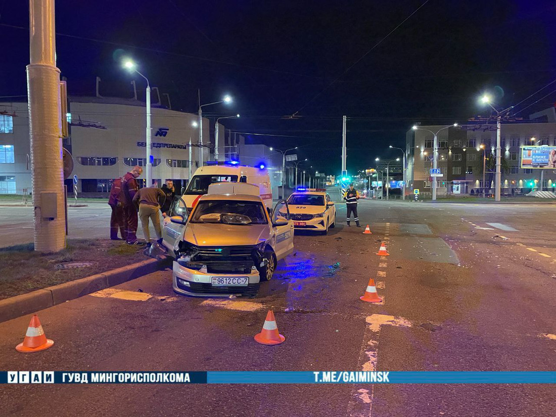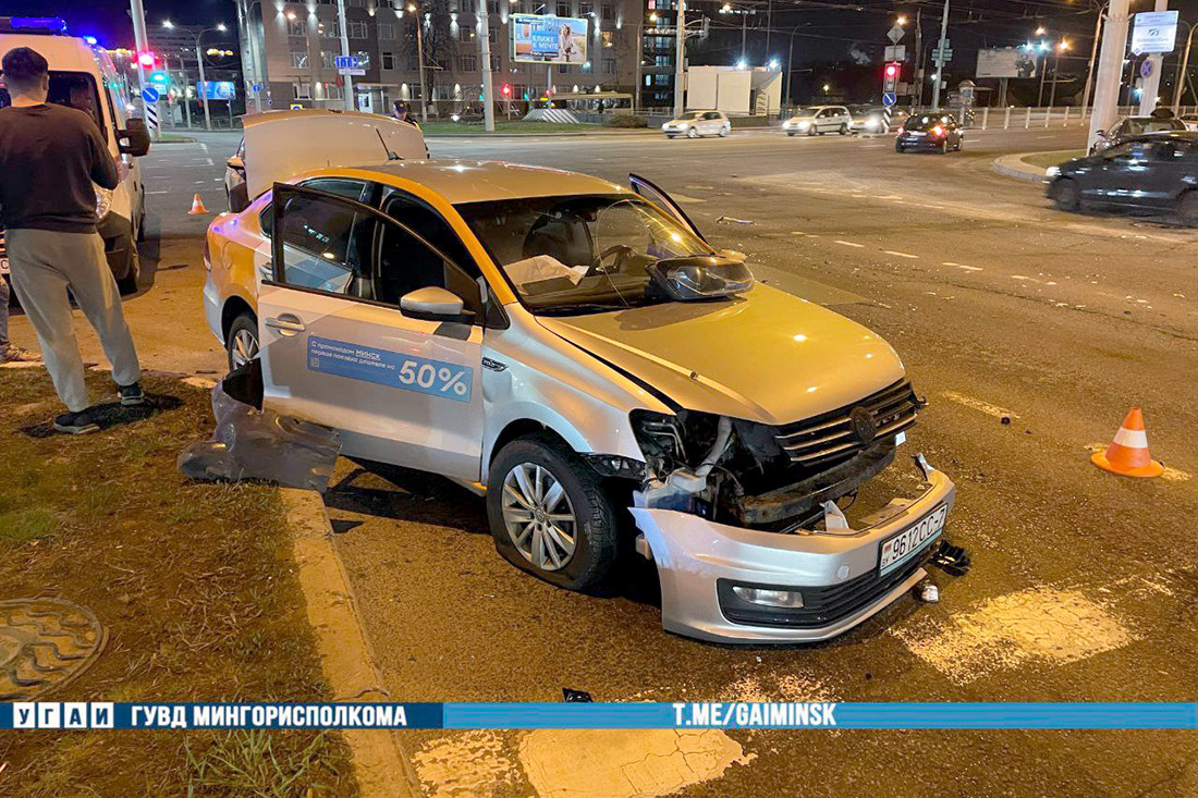 Авария на пересечении улиц Аранской и Маяковского в Минске произошла 8 апреля около 21:45. Столкнулись Rover и каршеринговый Volkswagen.