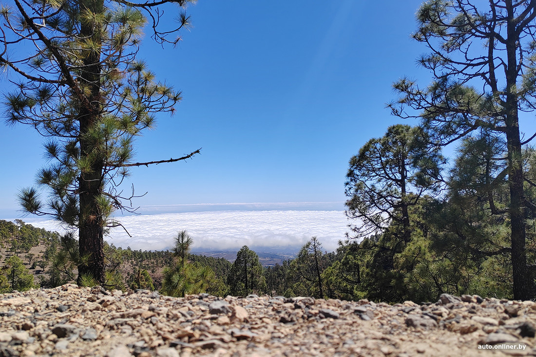 Дорога от Вилафлора к долине Тейде — рейд через ДНК самой природы. Внизу остался беспокойный океан, внизу зависли, уцепившись за скалы, пушистые облака. Вздымленная земля, опаленная первозданным огнем и солнцем, не прячется под зелеными зарослями, а предстает нагой, как есть. Ввысь, кажется вровень со скалами, тянутся раскидистые сосны. Они — живой пример необоримости жизни. Эти сосны растут не где-то, а на огромном вулкане, они знают, что такое всепожирающий огонь бездны. Но они не боятся огня. Такая сосна может пережить пожар, выгореть снаружи, но остаться живой внутри. И уже на следующий сезон на обгоревших ветвях снова появится свежая, зеленая поросль.