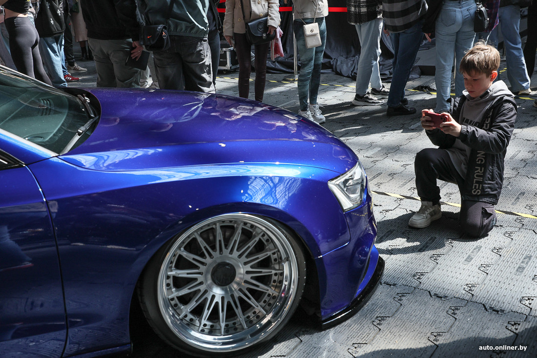 Последнее крупное автомероприятие, которое принимал Футбольный манеж, — это выставка «АвтоЭкспо», ставшая возрождением белорусского «Моторшоу». Тогда здесь тоже было громко и многолюдно, но сейчас — еще и ярко за счет десятков тюнингованных автомобилей разных эпох. Утром субботы очереди были огромные, они тянулись до проезжей части проспекта Победителей и вдоль нее.