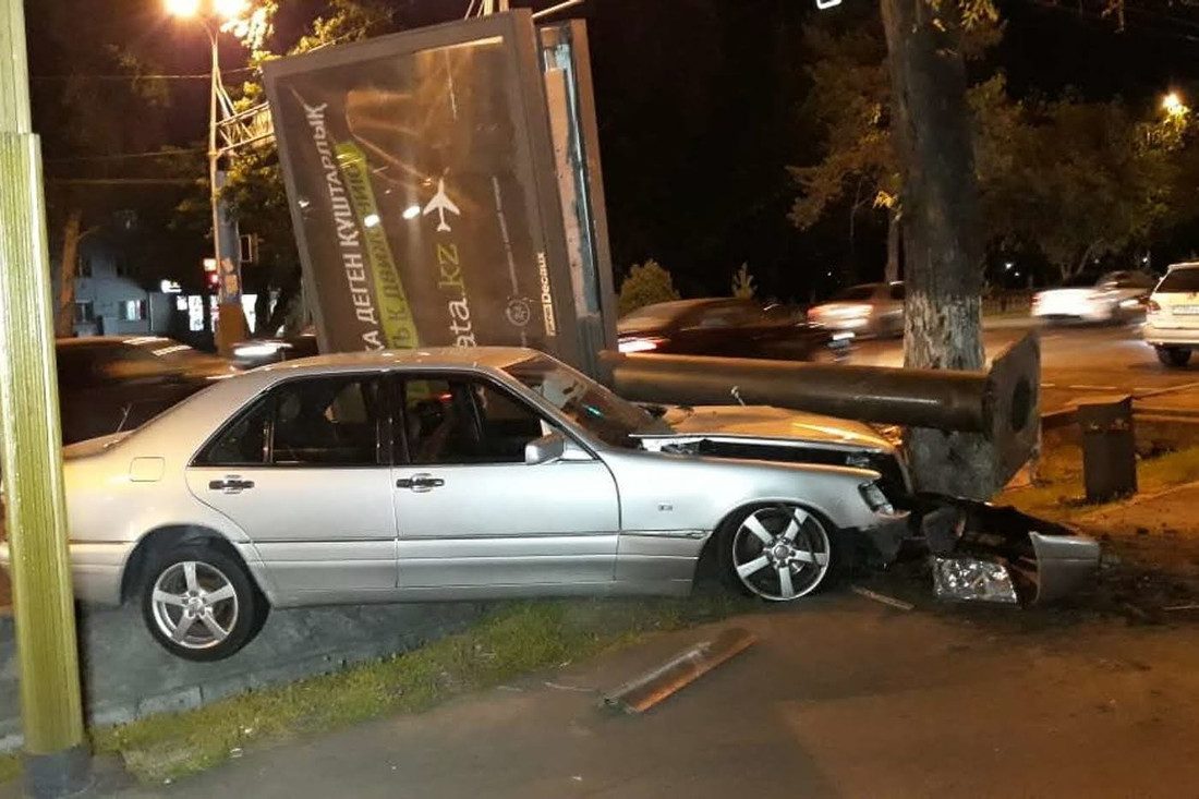 Ударившись об асфальт, указатель упал на крышу внедорожника и смял все его стойки. Основной удар пришелся на переднюю и заднюю части машины. Сложно представить, чтобы подобный трюк смогли поставить даже профессиональные каскадеры!