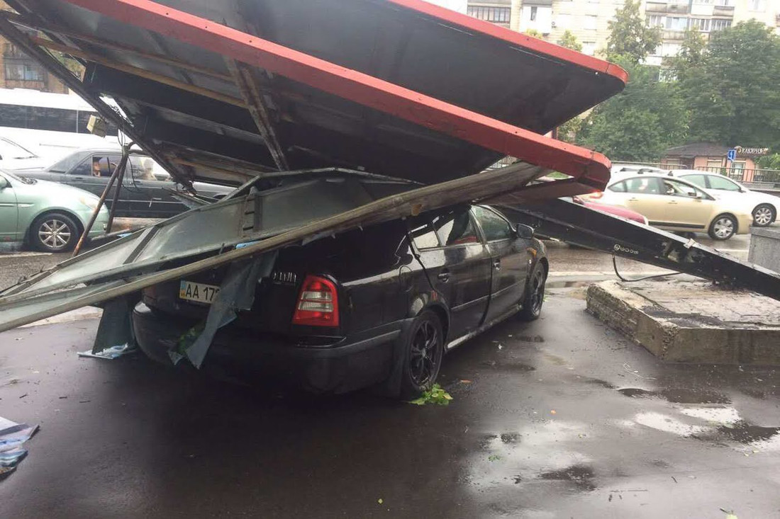 Падение различных щитов на автомобили далеко не редкость. Случается это чаще всего из-за сильного ветра и неустойчивости конструкций. Известны случаи, когда по причине буйства природной стихии не просто срывает щит с мачты, а сносит все сооружение целиком. Не зря ГАИ и МЧС в ненастную погоду рекомендуют оставаться дома и воздерживаться от использования личного транспорта.