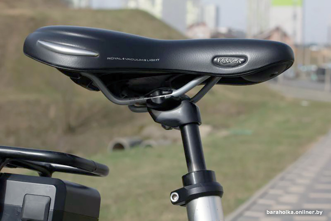 В остальном все стандартно: двигатель помогает крутить педали, регулировка мощности осуществляется через компьютер. Есть свет, есть багажник — весьма практичный велосипед для своих целей.