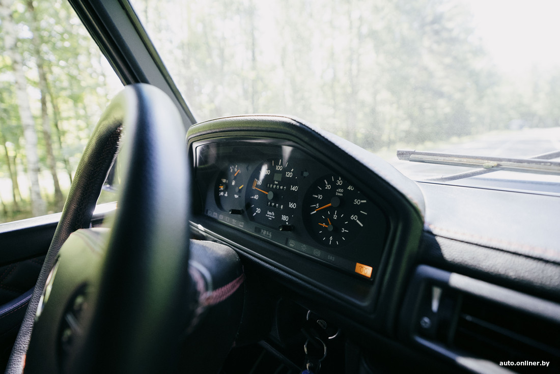 За рулем чувствуешь «вайб» тех самых сериалов по НТВ из нулевых: владельцы даже самых дорогих «китайцев» дорогу точно уступят. Но большой минус в том, что машина, как говорят, не едет. Турбированный 3,5-литровый дизельный мотор серии ОМ603 в паре с «автоматом» выдает мощность в 136 л. с., а с удлиненным кузовом и огромными колесами (а еще загрузкой в четыре человека внутри) буквально ползет. По заводу разгон до 100 км/ч должен составлять 16 секунд, но в данном случае цифры известны одним лишь создателям. Жмешь на педаль газа активнее, вдавливаешь ее в пол — ничего не меняется. На одном из перекрестков пришлось простоять довольно долго, пропуская поток главной дороги: просто страшно было выскакивать — вдруг какая резвая «электричка» прилетит в бок.
