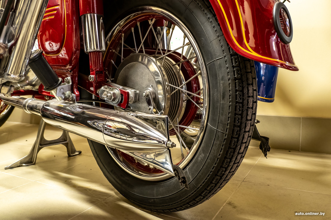 — Здесь очень много необычных деталей, которые неопытный глаз не увидит, — утверждает собеседник. — Например, замок зажигания организован в баке вместе с амперметром, который показывает заряд аккумулятора либо расход энергии. Мощность генератора в то время была небольшая, а тут ты видишь, заряжается во время езды АКБ или нет. Так что опция крайне полезная.