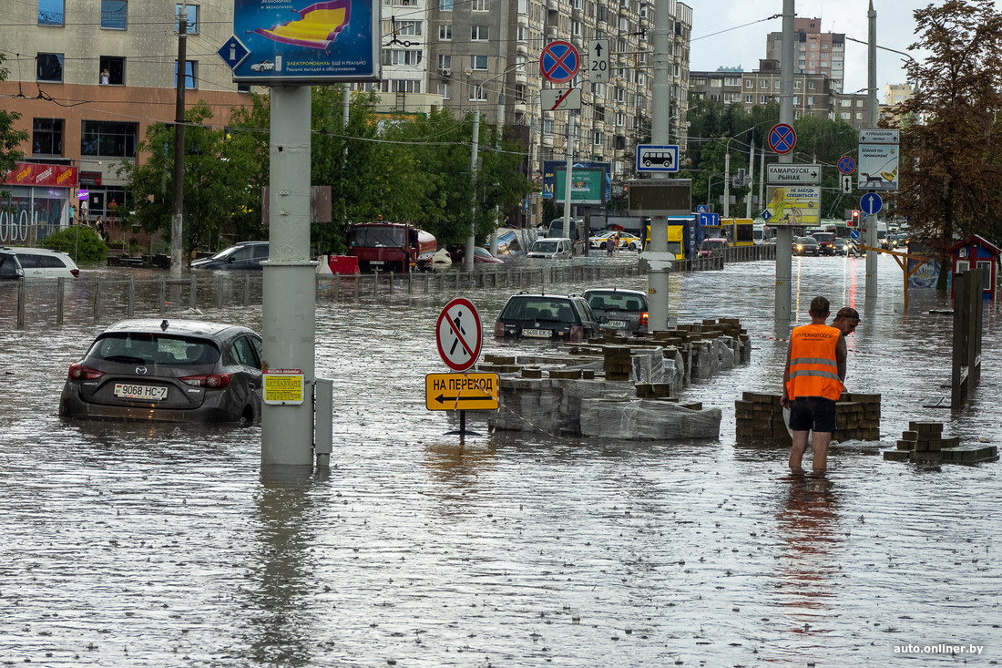 Кто-то был вынужден остановиться, пока вода не сойдет. Примеры с ул. Сурганова и Логойского тракта. В последнем случае дорогу перекрыла ГАИ, работали тракторы коммунальщиков.