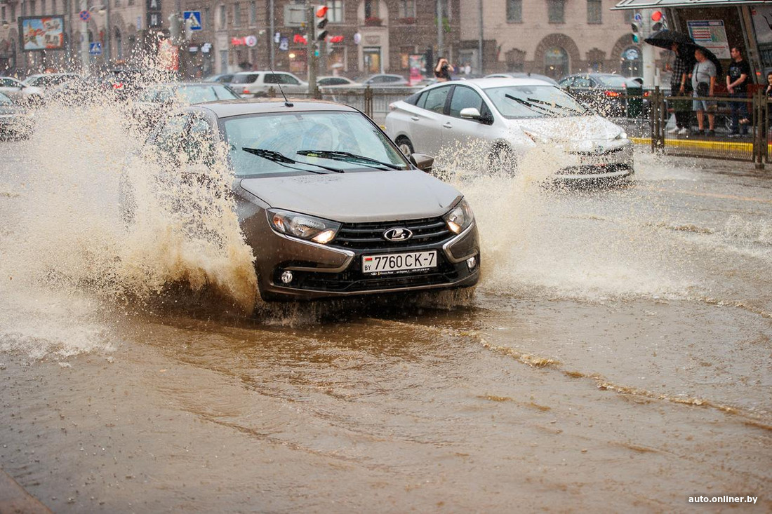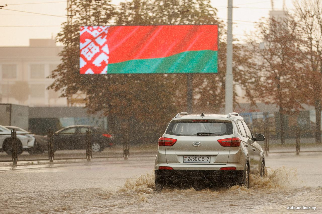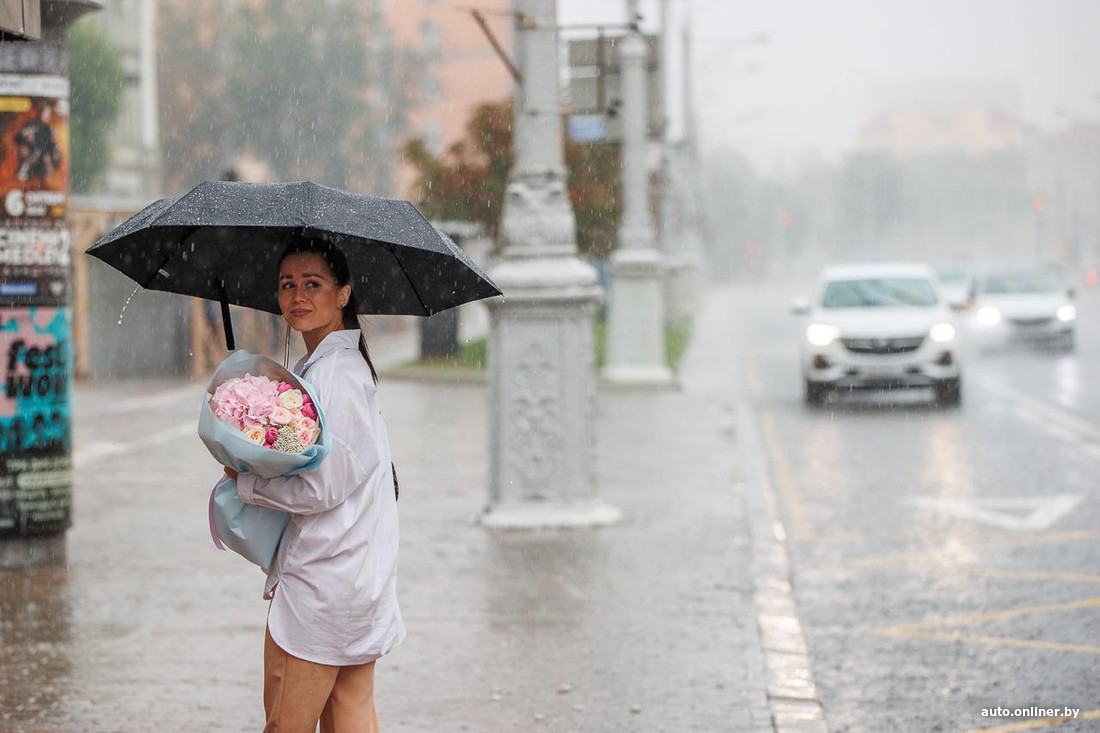 Жара в столице опять сменилась сильным дождем. После пяти часов на Минск обрушился мощный ливень, и в некоторых местах дорога вновь превратилась в реку. Движение транспорта на некоторых маршрутах было временно остановлено.