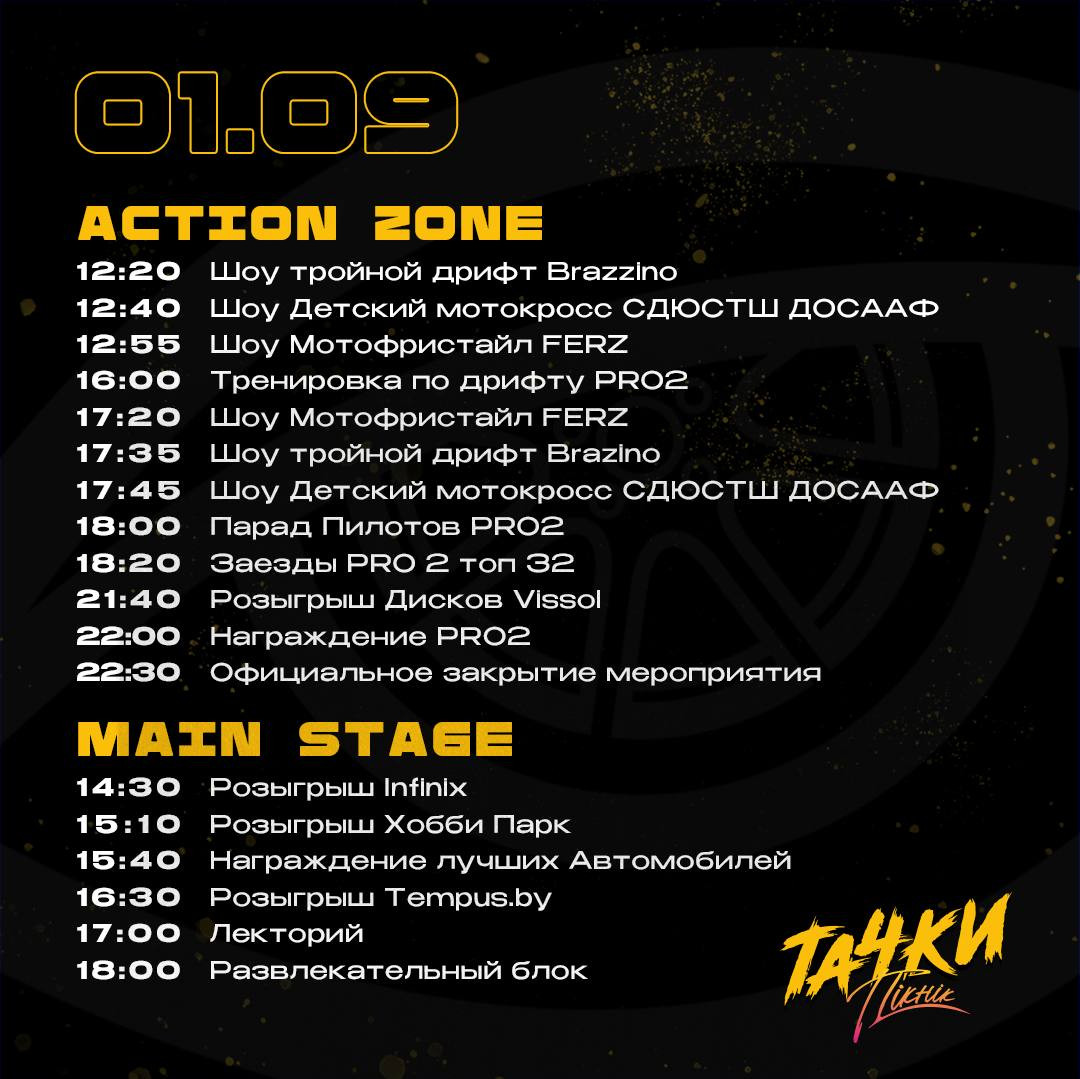 4-й финальный этап Кубка Республики Беларусь по дрифту серии PRO 2 будет проходить в эти выходные — субботу и воскресенье — с 11:00 до 21:00. Площадка — та же, что и у фестиваля «Тачки Пикник» в ОСК «Раубичи».
