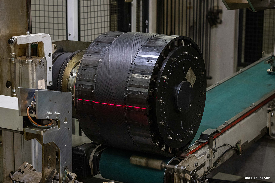 — Она будет накручиваться под протекторную часть, — объясняет экскурсовод. — Когда автомобиль едет на высокой скорости, шина увеличивается в размерах. Чтобы этого не случалось, мы бандажом как бы стягиваем ее. Тогда покрышка лучше сохраняет форму, не увеличивается. От того, сколько витков сделает эта лента, зависит индекс скорости.