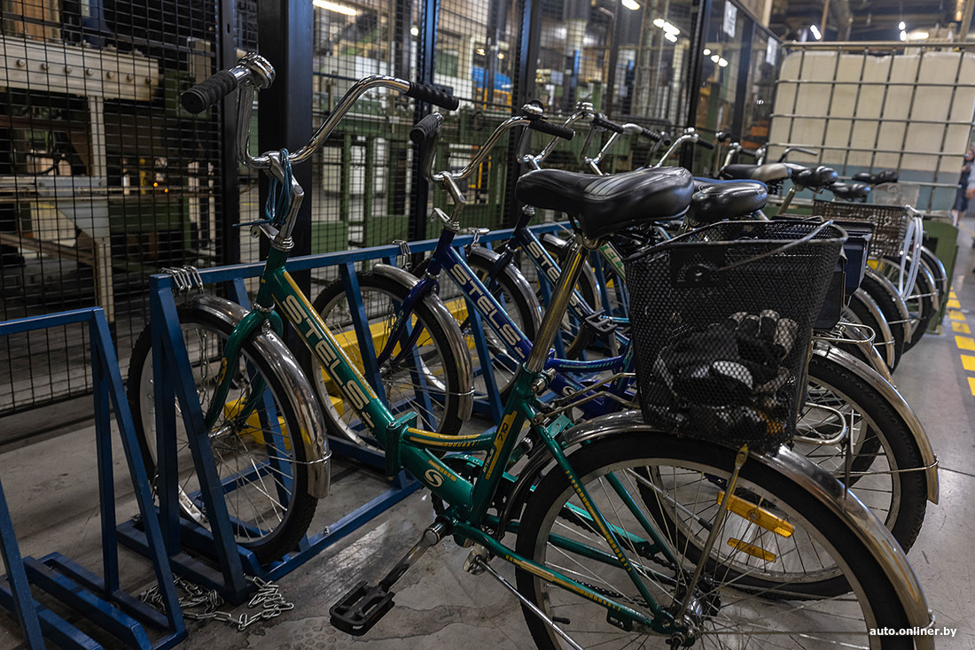 По всей территории завода можно найти небольшие парковки для велосипедов и самокатов. Площадь предприятия внушительная — ее сравнивают с 22 футбольными полями, поэтому для передвижения многие работники используют двухколесный транспорт.