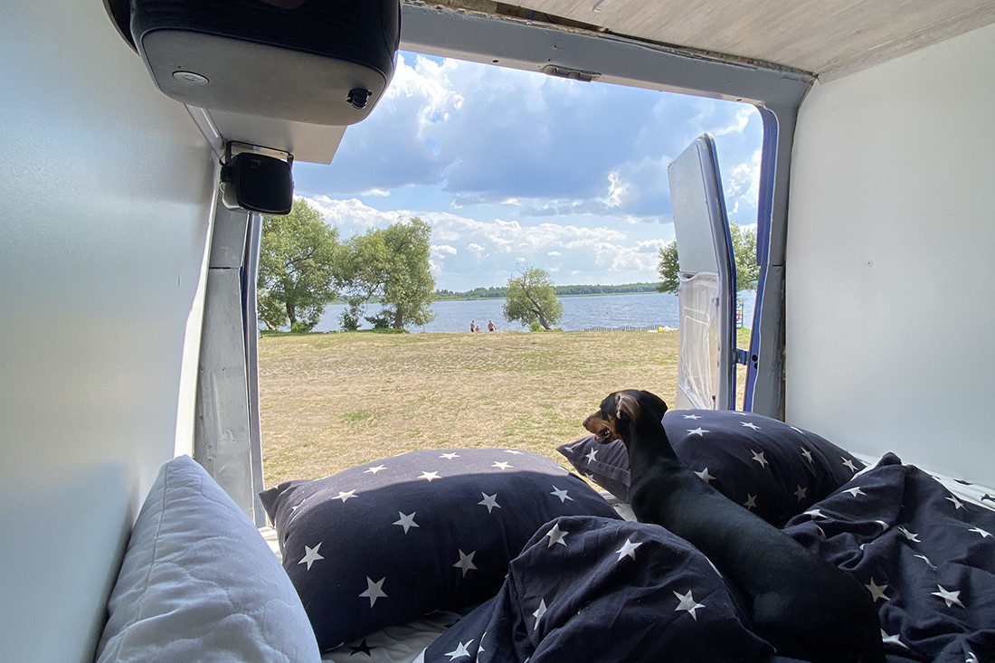 Утром поняли, что за ночь новые постояльцы на стоянке так и не появились. Правда, поваляться в кровати подольше все равно не получится: кемпер быстро нагревается на солнце. Даже приоткрытые окна спасут не сильно.