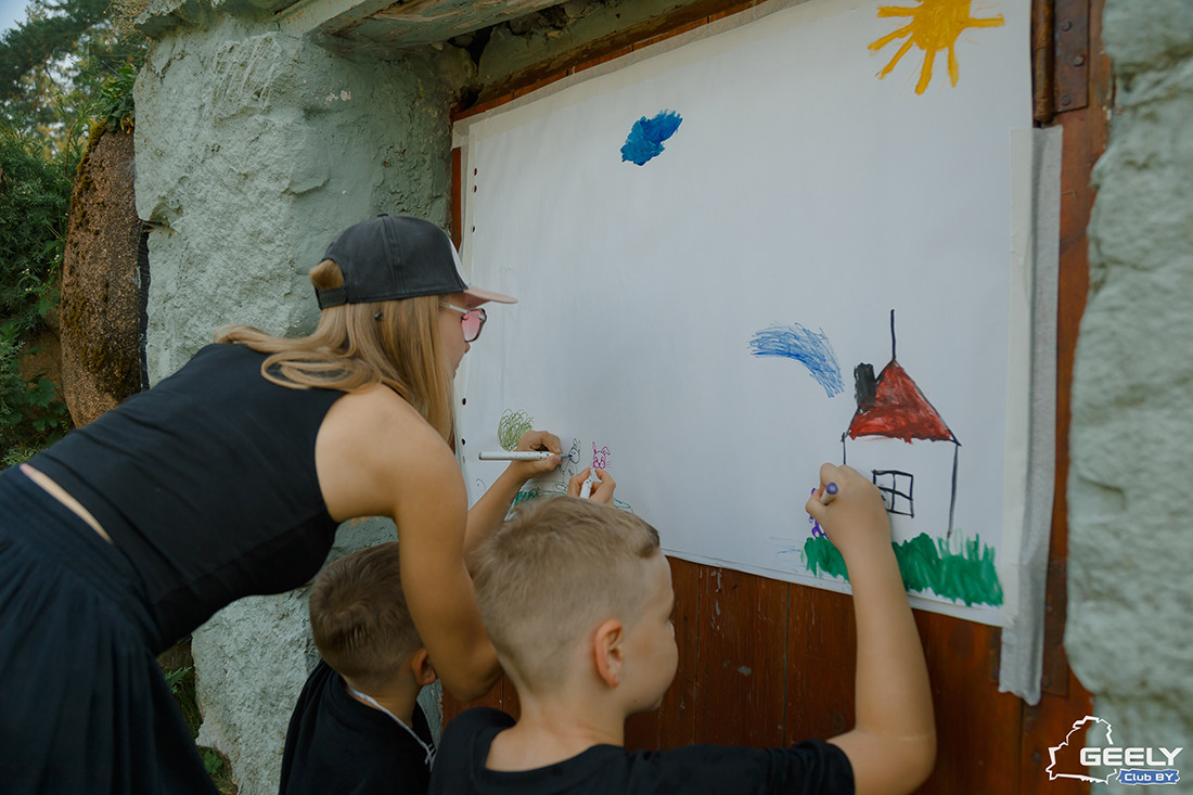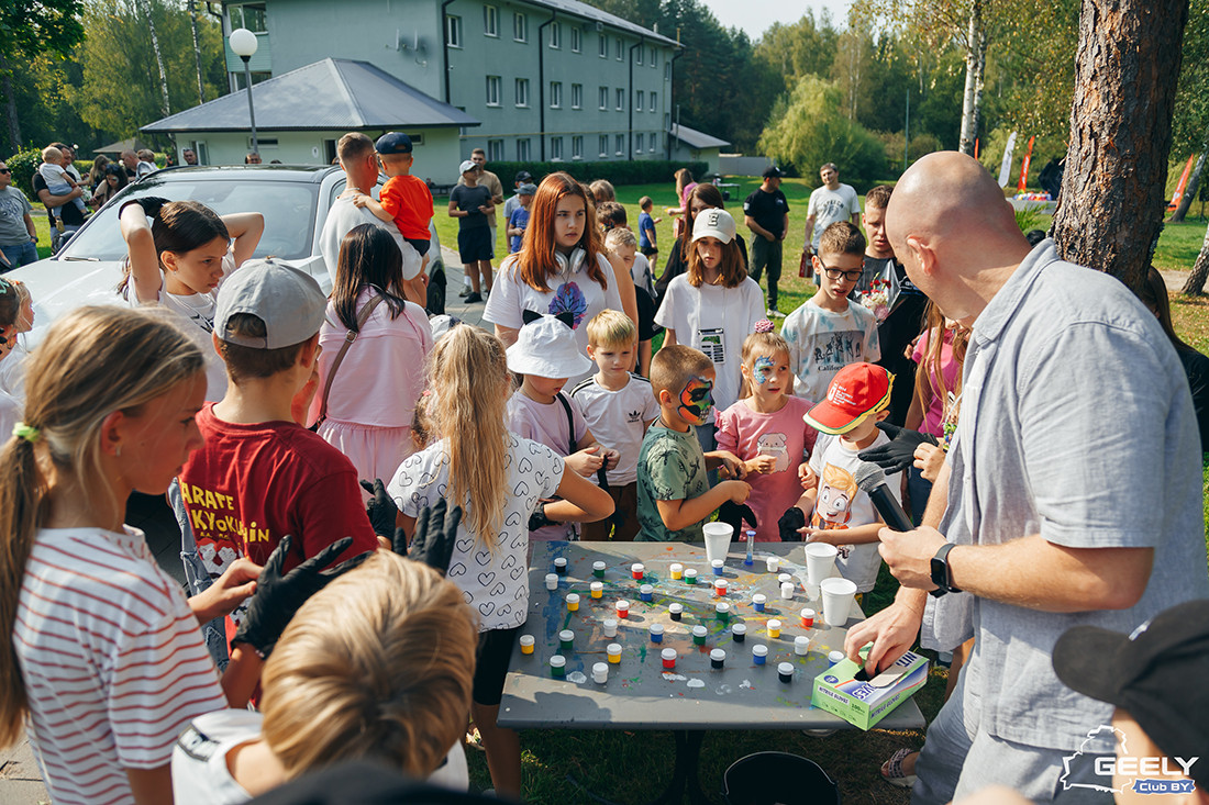Одна из самых запоминающихся активностей заключалась в том, что нужно было гуашью разрисовать две белые Geely Tugella.