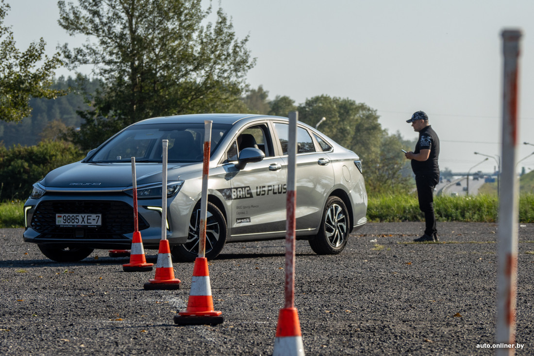 Краснов садится за руль и показывает, чего именно ждет от конкурсантов. Самые внимательные могут подсмотреть его приемы: всегда стабильная скорость и аккуратная траектория — машина буквально «облизывает» каждый столбик, но не касается его. Ради интереса замерили время: 55:06 секунды.