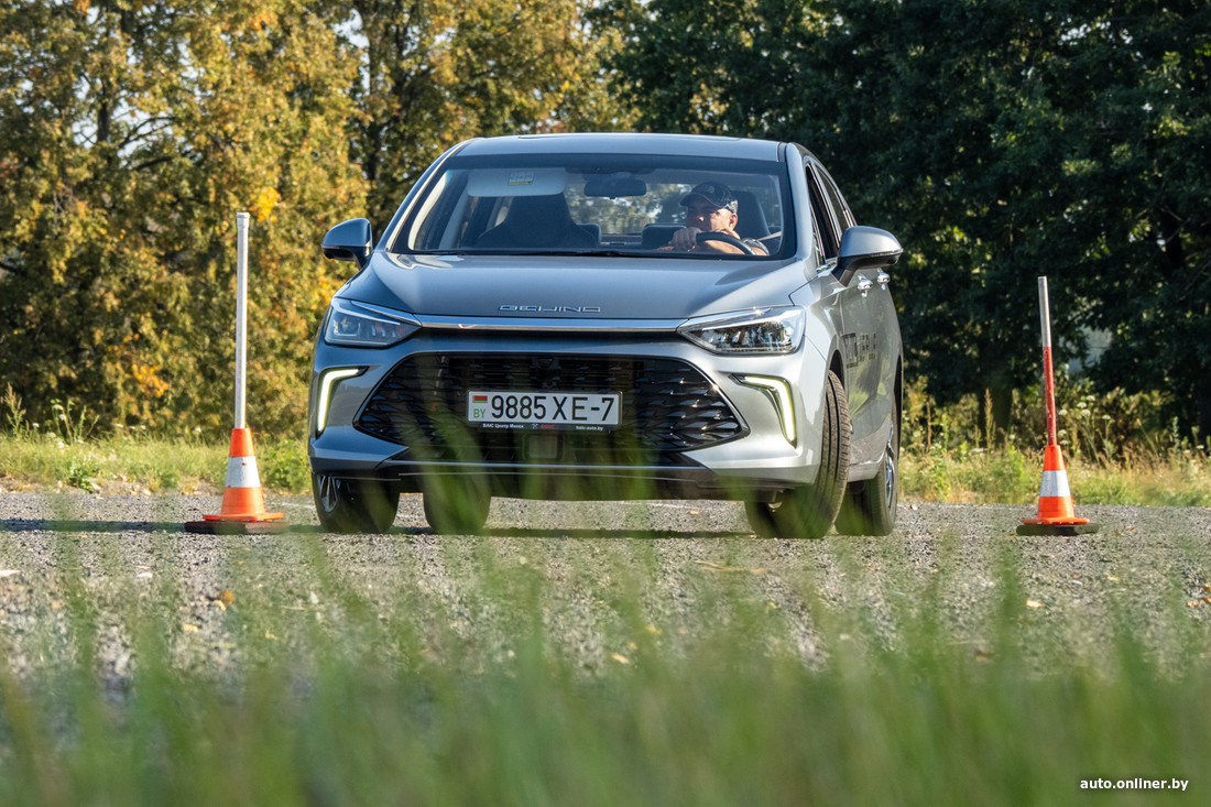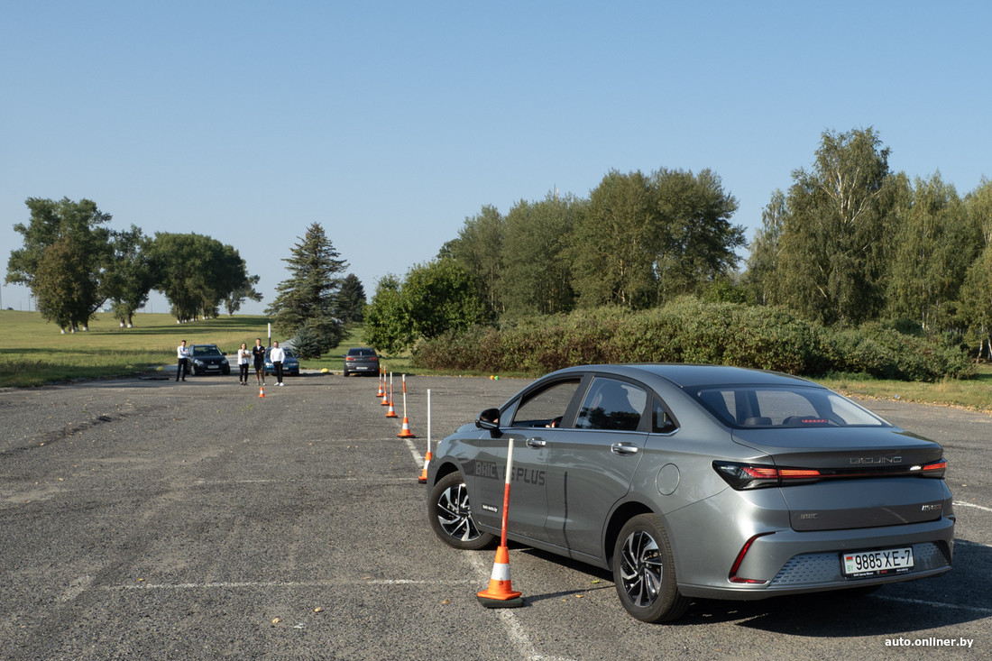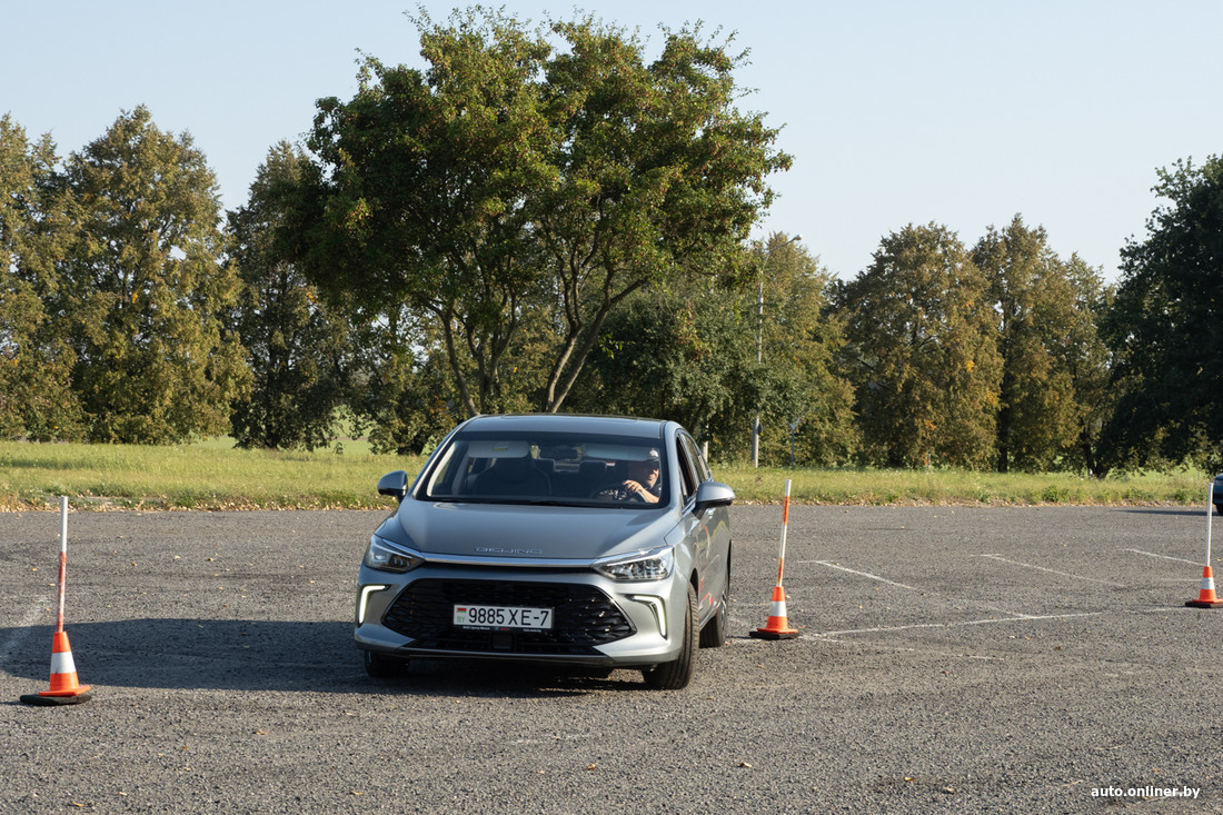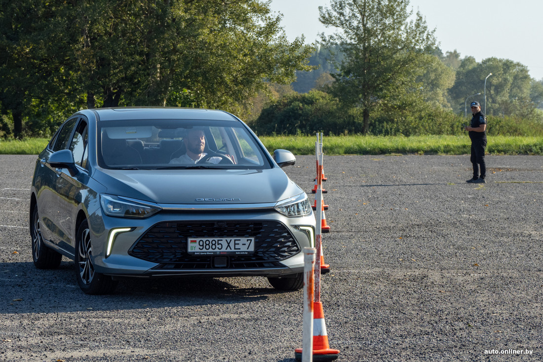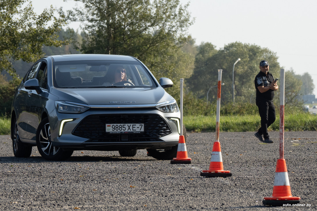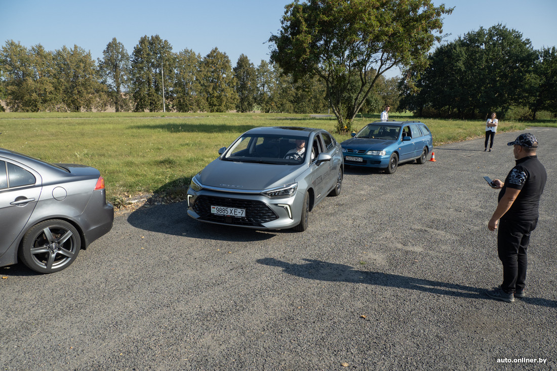 Денис садится за руль. И как под копирку делает три одинаковые попытки: всякий раз очень быстро, всякий раз не очень чисто — то нос, то задняя часть немного за условной линией коридора. Но с его лучшим временем трудно спорить — те же 8 секунд, что и у Краснова.