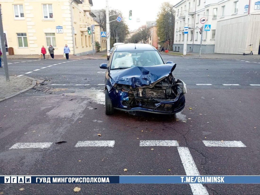 Сегодня около 08:00 на столичной улице случилось ДТП. От удара машину отбросило в стену здания.