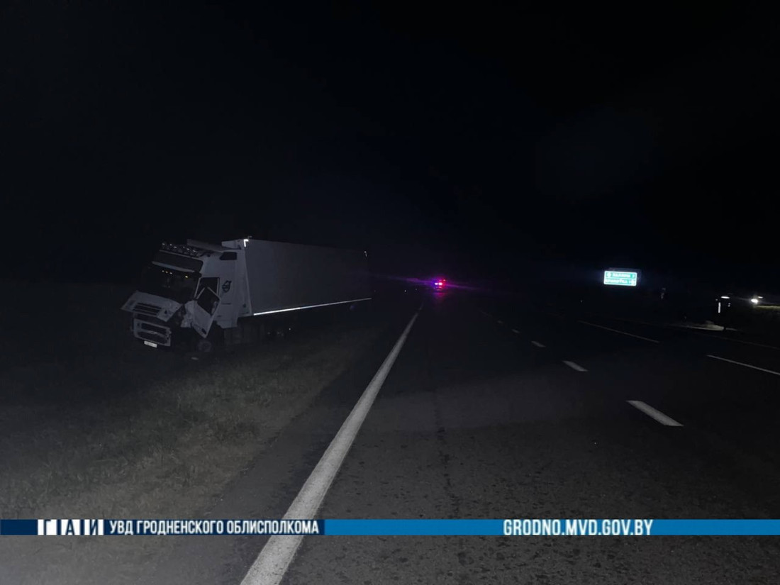 — Около 04:20 на автодороге Р52 «Островец — Ошмяны» 44-летний водитель большегруза Volvo двигался в сторону города Островца. В какой-то момент он неправильно выбрал скорость движения, не справился с управлением и допустил столкновение с впереди движущимся микроавтобусом Ford под управлением 50-летнего водителя, который совершал маневр левого поворота.