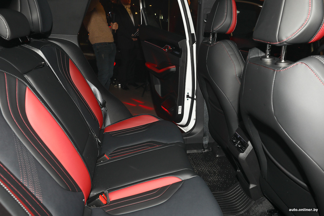 Пока что новый Coolray заявлен в одной (но очень богатой) комплектации Flagship Plus. В оснащение модели входит двухцветная окраска кузова, карбоновая отделка внешних деталей (бамперов, стоек, корпусов зеркал), шины размерностью 215/55 R18 на легкосплавных дисках, панорамная крыша с люком и электропривод крышки багажника.