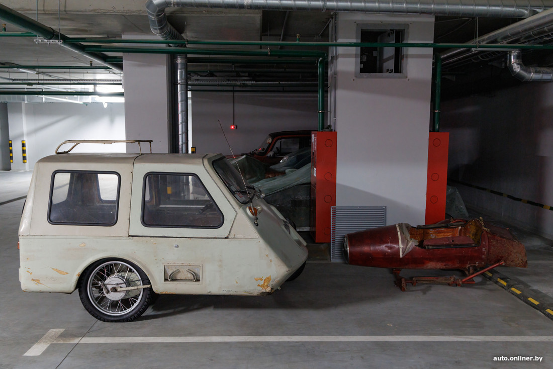 Зато настоящей находкой стал паркинг комплекса Centropol, в котором располагается супермаркет «Перекресток». На зимовку сюда, видимо, отправили «первый белорусский концепт-кар» под названием «Длота», уникальное мотокупе из Jawa 353 и самодельный автомобильчик «Компакт». Всей этой технике место в музее, а не на скрытой от глаз стоянке.