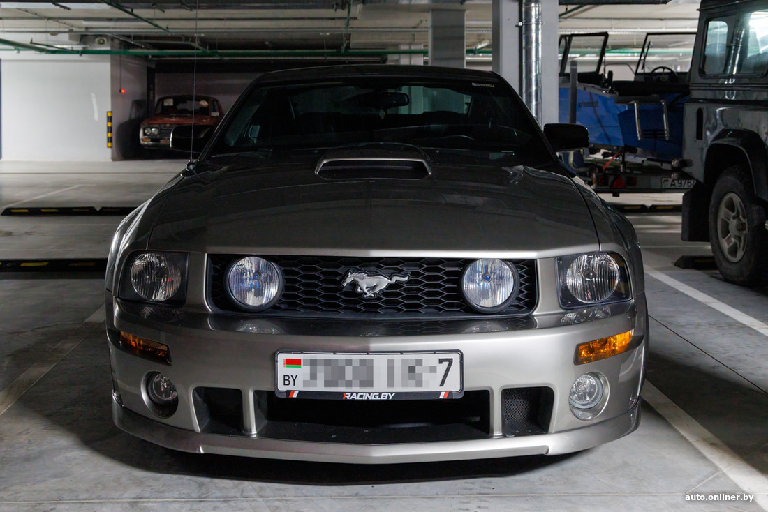 По соседству с творениями белорусских кулибиных затаились тюнингованный Ford Mustang и старенький Land Rover Defender. Было бы весело, если бы они принадлежали одному владельцу.