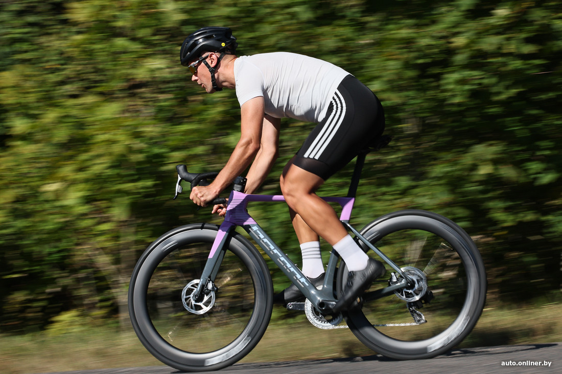 Скоростных сравнений в этот раз не проводили. Объективно: на любой велосипед нужно как следует усесться, прикатать, чтобы проводить подобные эксперименты. Что касается собственных ощущений, то вы легко почувствуете разницу от более простых моделей, рассчитанных на среднего «катальца», разве что привыкли ездить на топовых гоночных болидах.