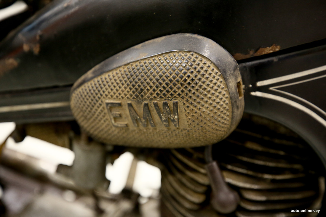 Когда провозгласили ГДР, Сталин издал указ возобновить производство мотоциклов. До 1949 года R35 выпускался еще под маркой BMW, но позже его переименовали в EMW и поменяли эмблему. Цвет стал отсылать к Красной армии.