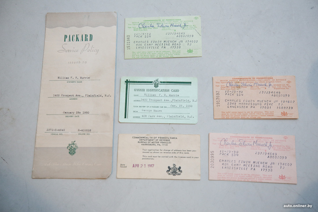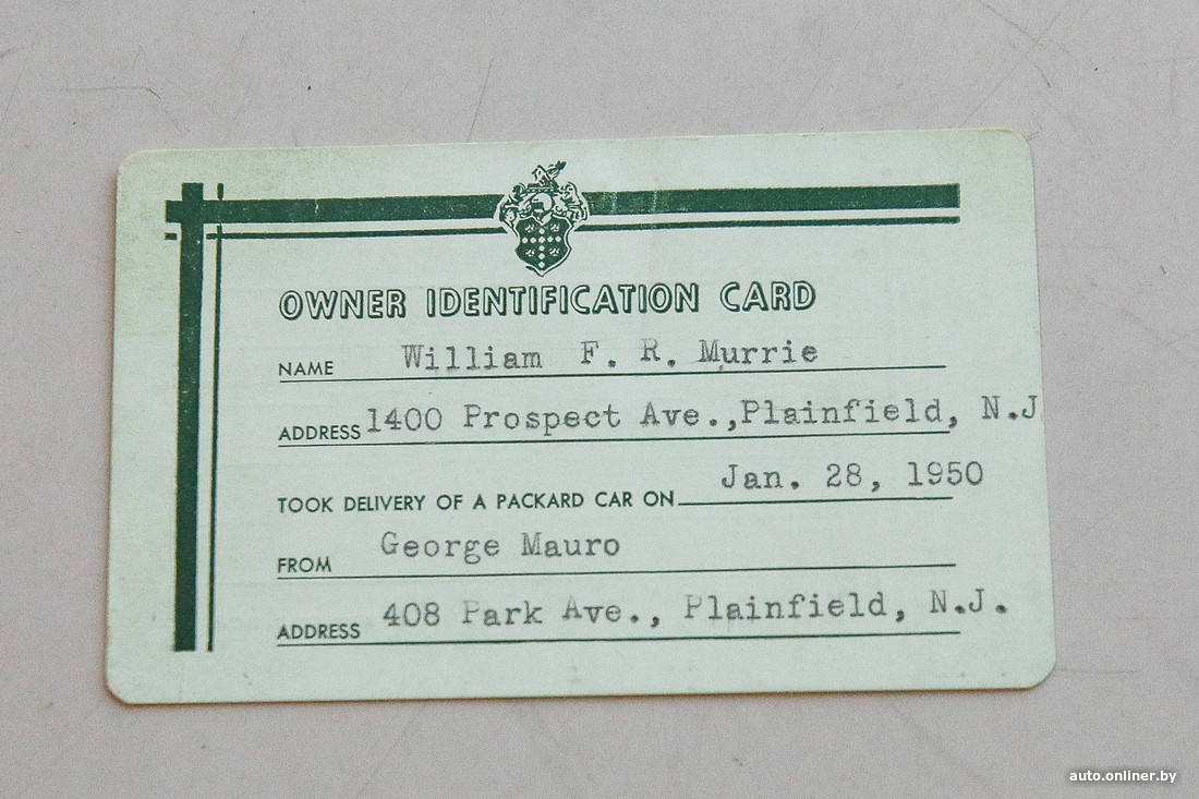 Если порыться в бумагах, то можно отследить практически всю историю автомобиля. Среди документов мы нашли идентификационную карту владельца, датированную 1950 годом и выписанную на некого Уильяма Ф. Р. Мьюри. Жив ли этот человек — неизвестно, но его машина довольно неплохо себя чувствует.